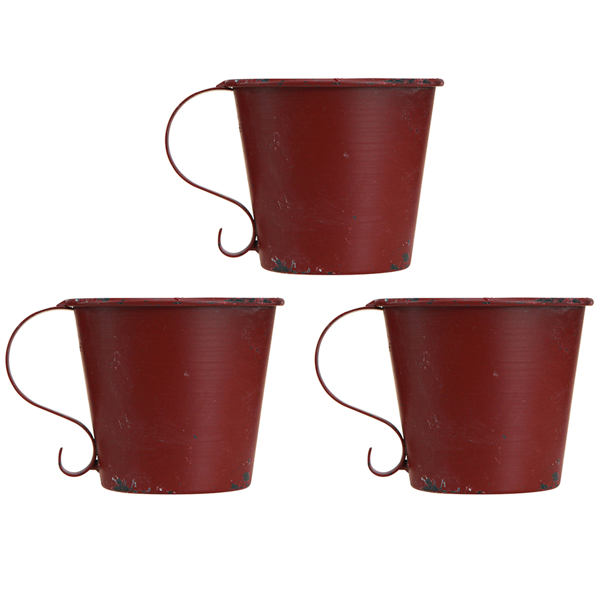 Stabkerzenhalter Vintage Tasse Deko Weinrot Ø9,5cm H8cm 3St