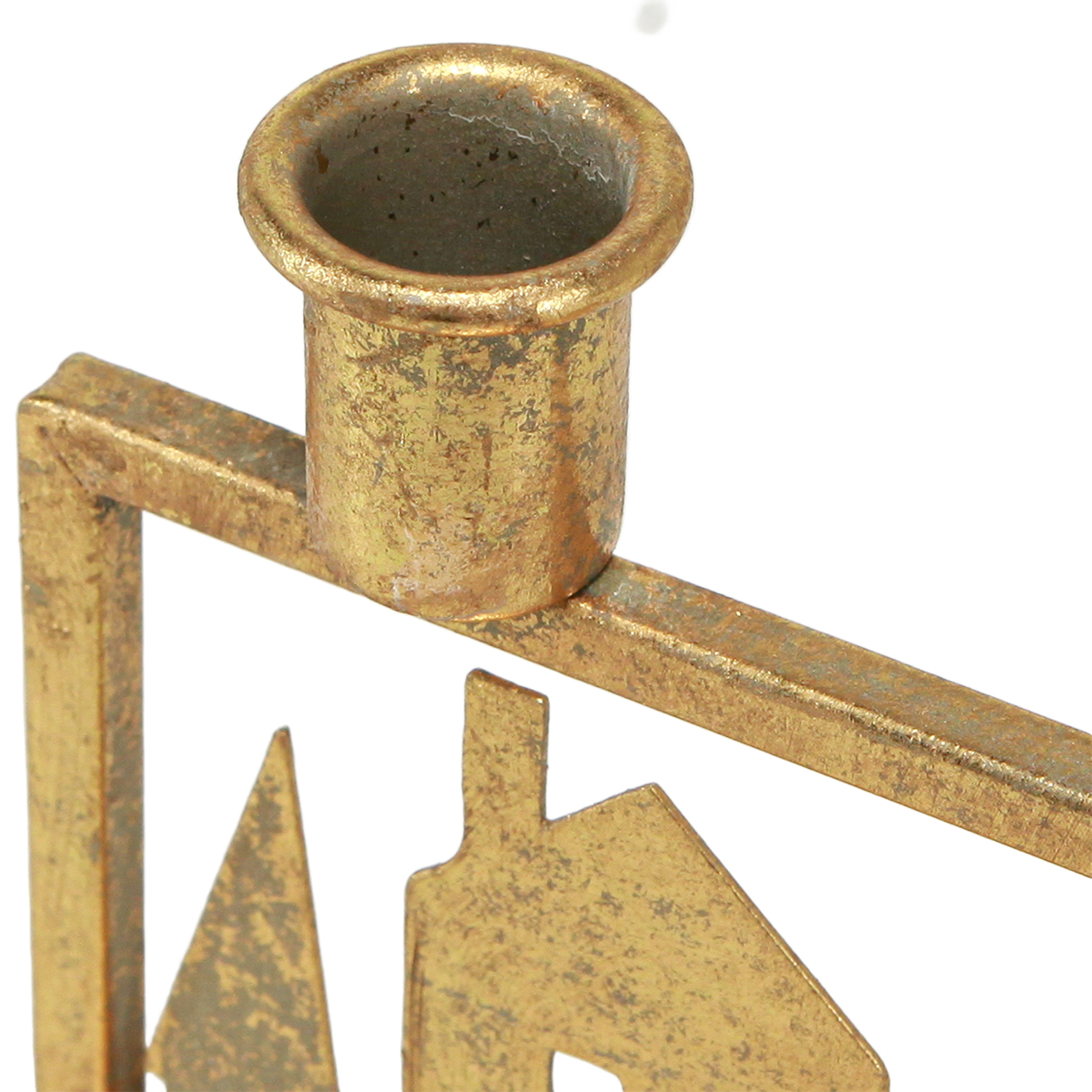 Produktname: Stabkerzenhalter Weihnachten Häuschen Antik Gold Optik 10×6×14cm 2St
