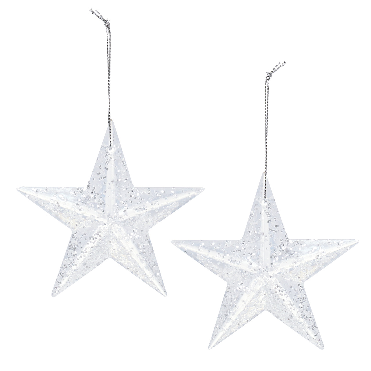 Stern zum Hängen Klar mit Glimmer 9,5cm 12St