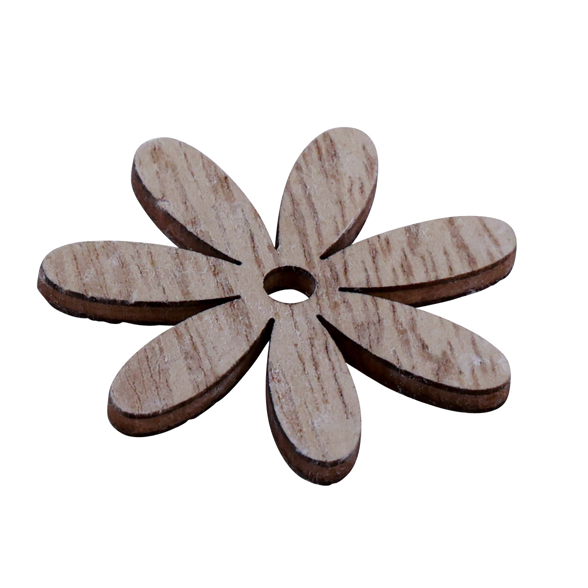 Zwar sind die Streuteile alle in derselben Form und Größe gestaltet, dennoch unterscheiden sich die Holzblumen in ihrer Farbgebung. Einige sind dunkler gehalten, andere heller, bei manchen tritt die Maserung deutlich hervor.