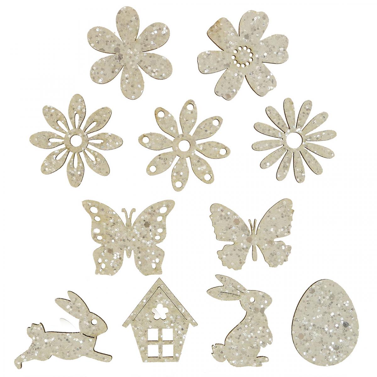 Produktname: Streudeko Holz, Streuteile Frühling Ostern Weiß 2–4cm 64St