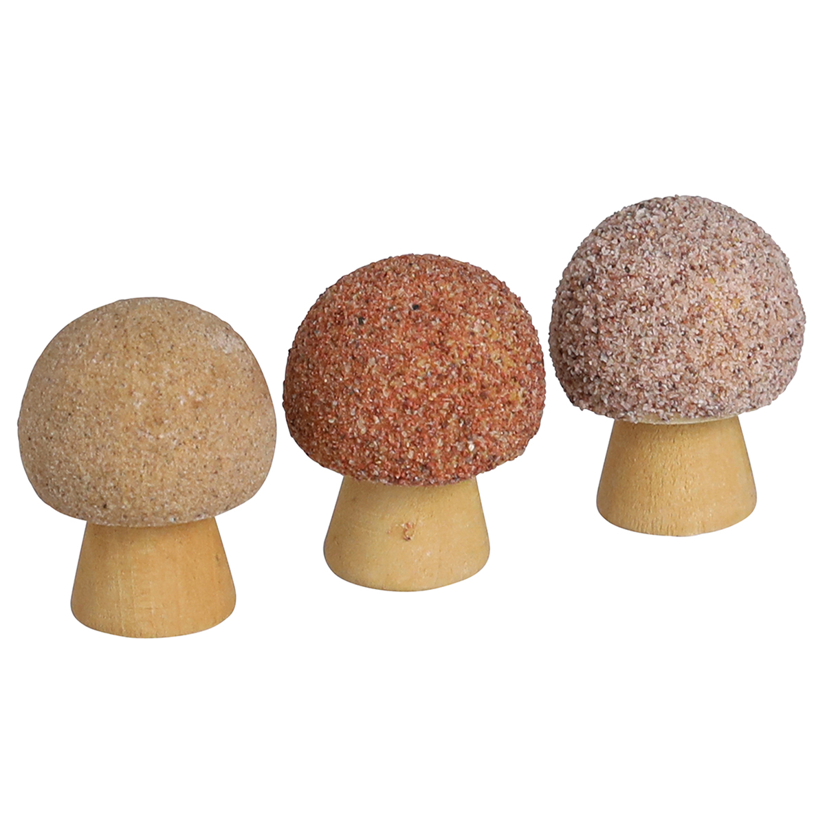 Diese Deko-Mini-Holzpilze sind aus echtem Naturholz gefertigt und die Kappen sorgfältig mit Dekosand in verschiedenen Brauntönen überzogen, um eine besondere Optik zu erzielen. Mit einem Durchmesser von 2cm und einer Höhe von 3cm sind sie ideal, um kleine Akzente zu setzen.