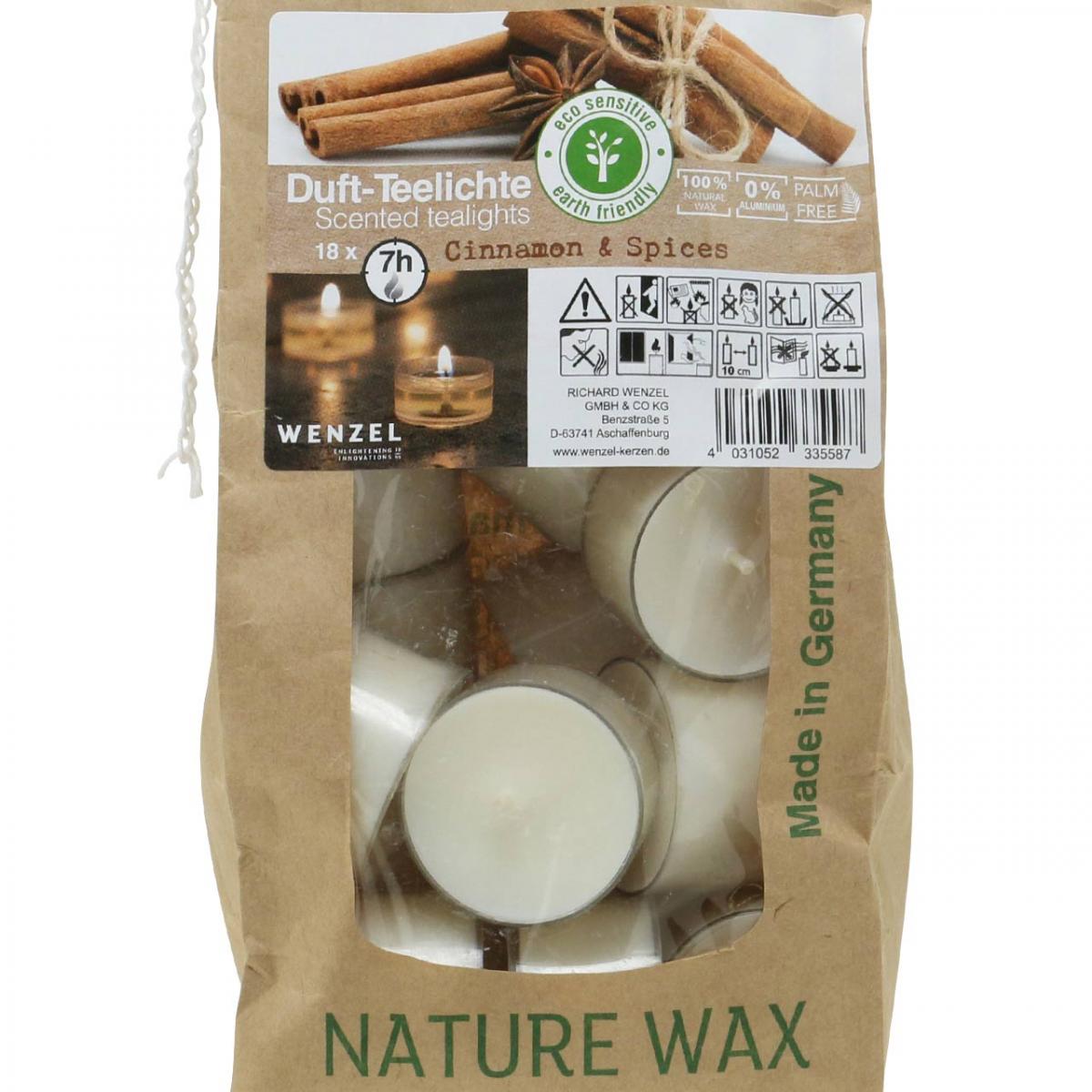 Produktname: Teelichter Zimtduft, Weihnachtskerze, Duft-Teelicht, Kerzendeko Ø25cm H40cm Weiß 18 St