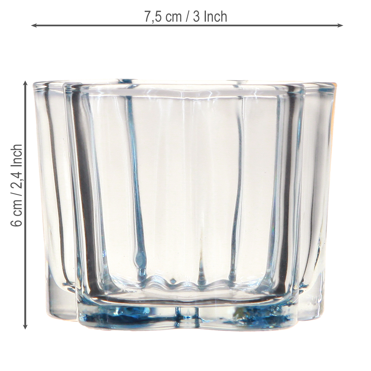 Teelichthalter Glas Blume Teelichtglas Blau Ø7,5cm H6cm 6St