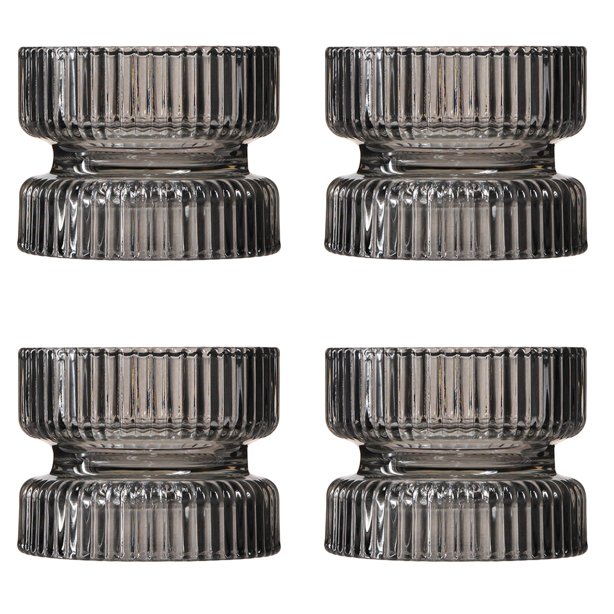 Teelichthalter Glas Deko Geriffelt Grau getönt Ø9cm H7cm 4 St