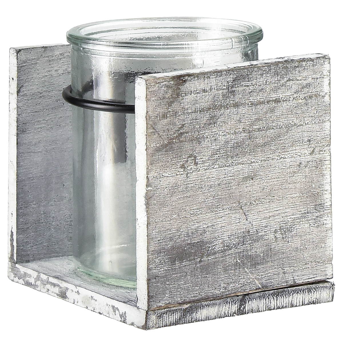 Teelichthalter aus Glas in rustikalem Holzrahmen – Grau-Weiß, 10x9x10cm – Charmante Tischdeko 3St