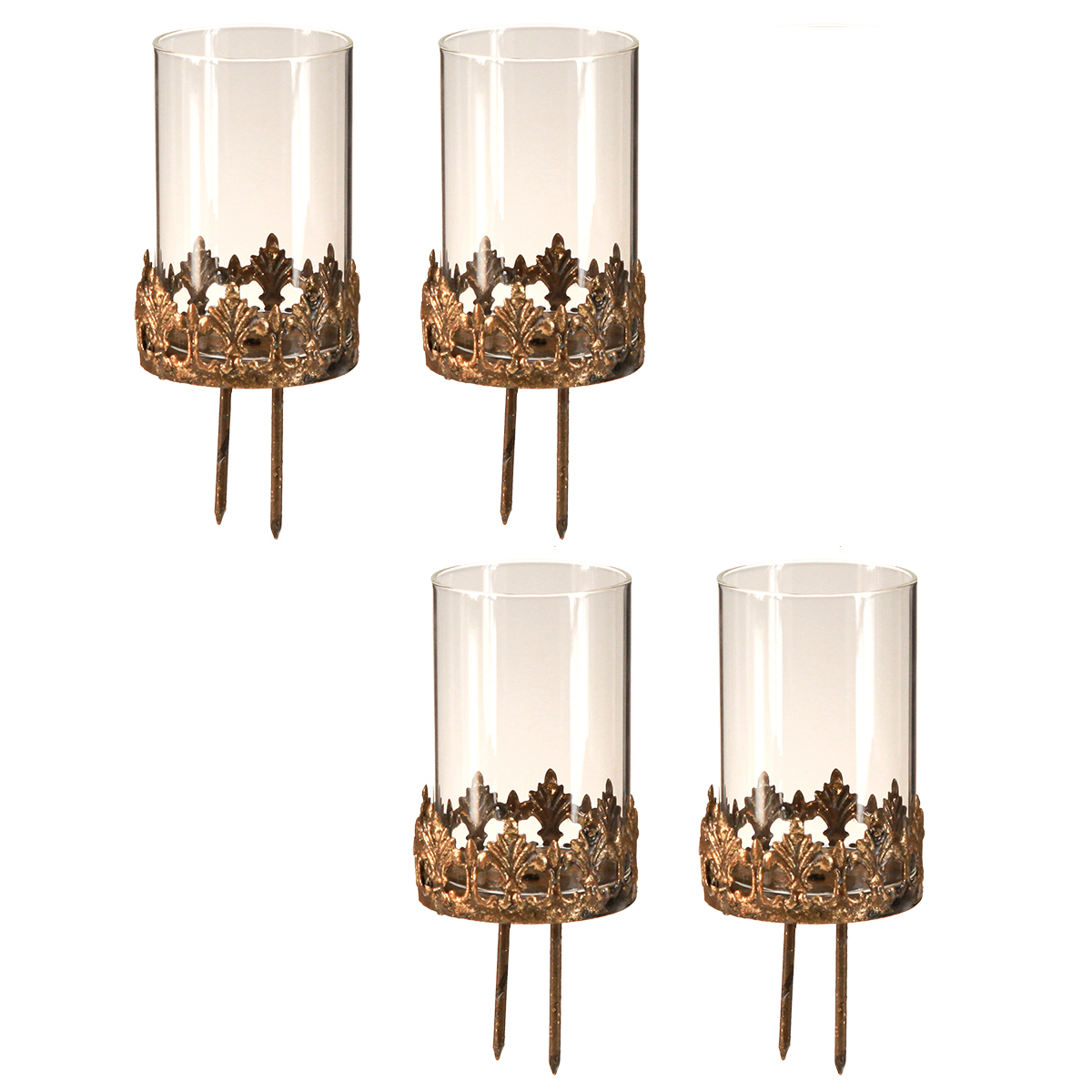 Teelichthalter mit Glas zum Stecken Antik Optik Gold Ø5,5cm 4St