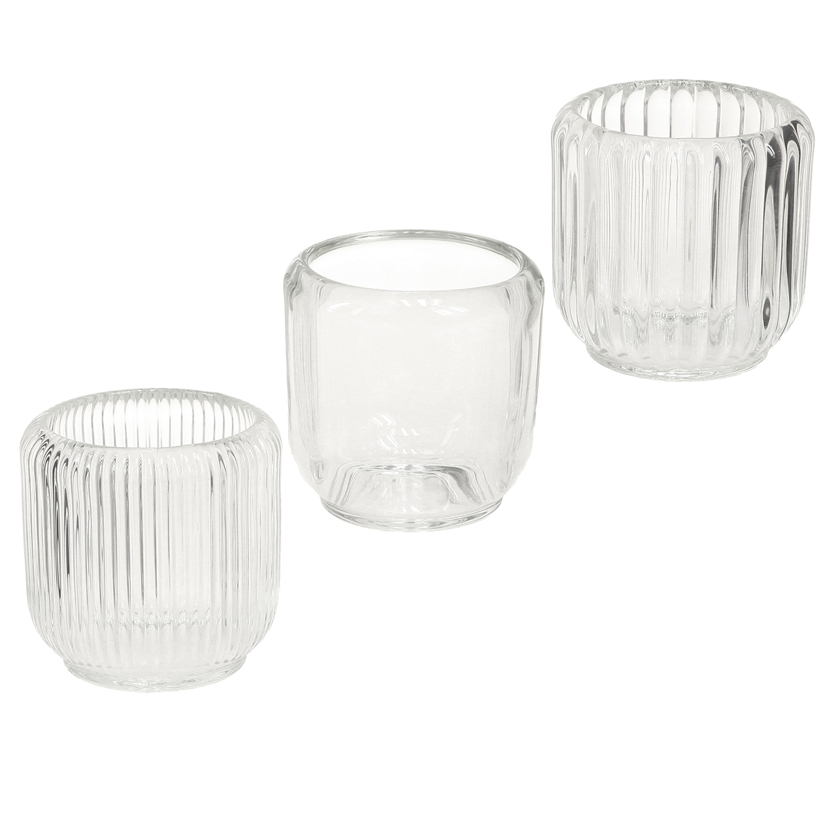 Bringen Sie einen Hauch von Vintage und Retro in Ihr Zuhause mit unseren Teelichthaltern und Kerzenhaltern aus klarem Glas. Die Teelichthalter bestechen durch ihre stilvolle Klarheit und die kunstvolle Verarbeitung, die jede Tischdekoration aufwertet. Gerade in der tristen Jahreszeit erhellen sie Ihr Wohnambiente mit gemütlichem Kerzenschein und sorgen für eine romantische Dinneratmosphäre. Die runden Teelichthalter sind nicht nur ideal für Teelichter, sondern auch als Kerzenhalter für kurze Stumpenkerzen geeignet. In der Packung befinden sich drei verschiedene Varianten: mit glatter Oberfläche, mit schmalen Rillen und mit breiteren Rillen. Damit setzen sie Highlights in Ihrer Tischdeko und passen zu jedem Anlass, sei es eine festliche Tischdekoration oder eine gemütliche Wohnraumdekoration im Retro-Stil.