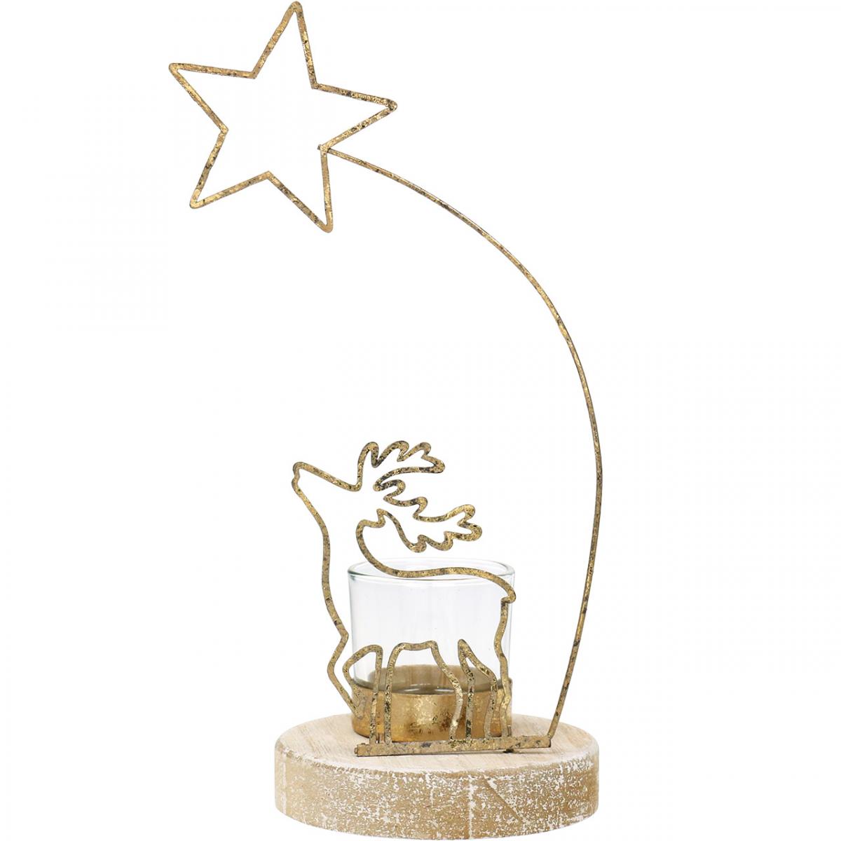 Teelichthalter Rentier und Weihnachtsstern Metall Ø10cm H24cm