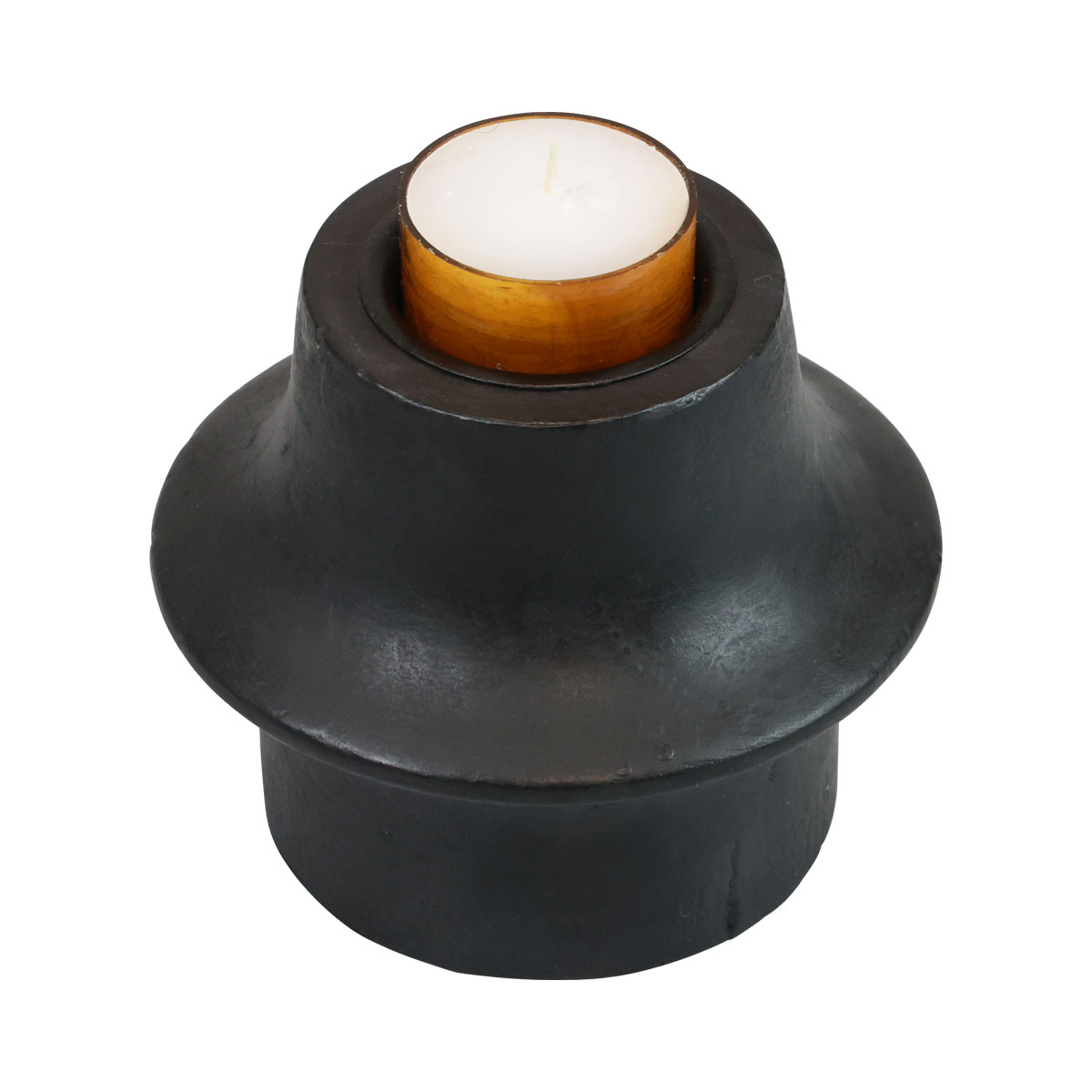 Teelichthalter Schwarz Kerzenhalter Keramik Ø12cm H9cm