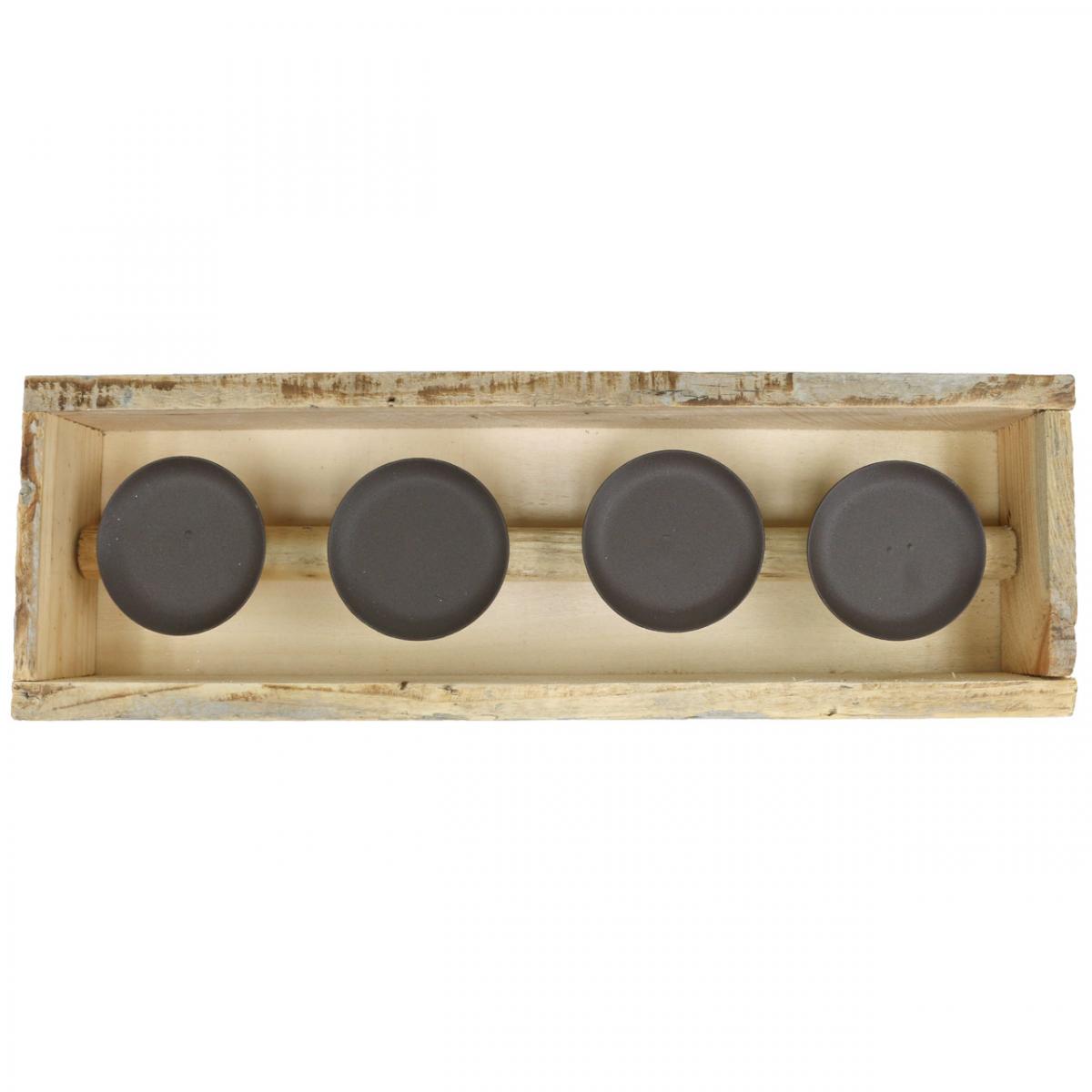In der Tischdeko für Advent darf ein Kerzenständer für Stumpenkerzen nicht fehlen! Dieses Kerzentablett aus Holz kommt mit insgesamt vier Stumpenkerzenhaltern.