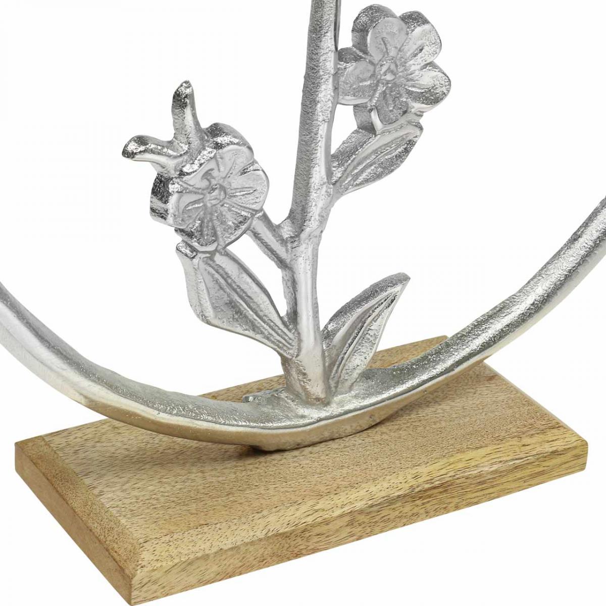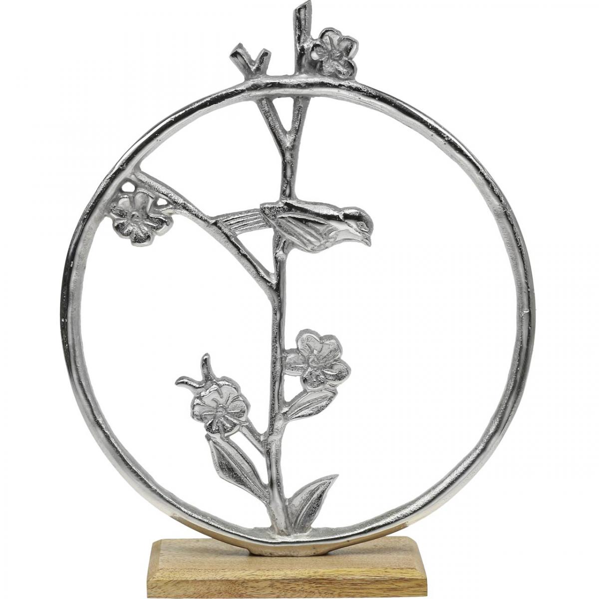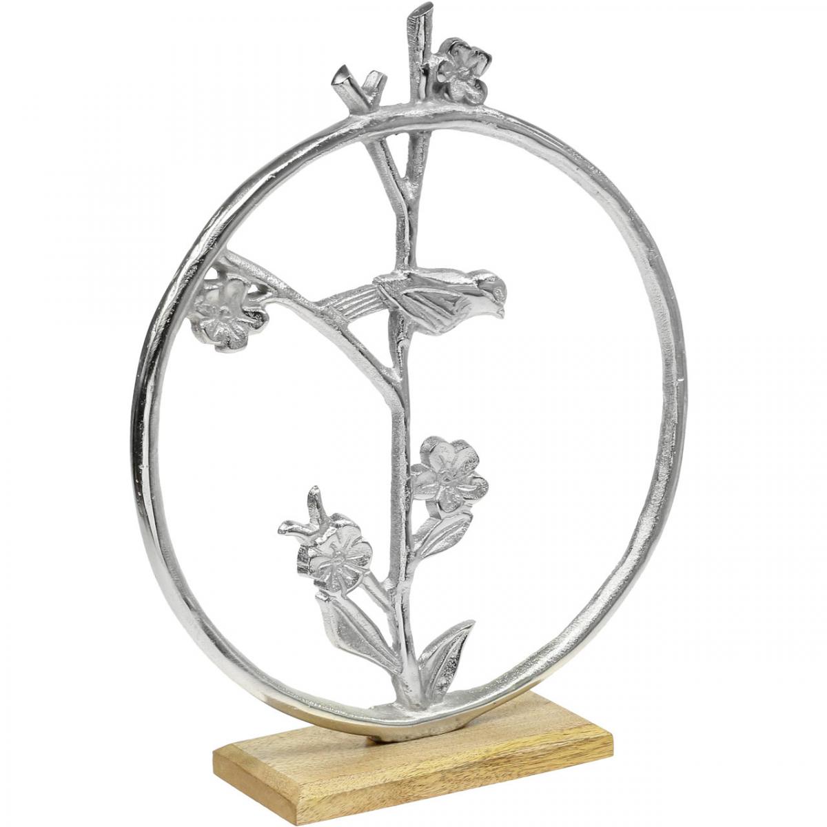 Der Dekoring mit Vogel-Deko in Silber besitzt einen stabilen Standfuß aus Mangoholz. Das Zusammenspiel aus silbernem Metall und Naturholz macht sich besonders schön und bildet einen ansprechenden Dekoartikel für Ihr Wohnzimmer!