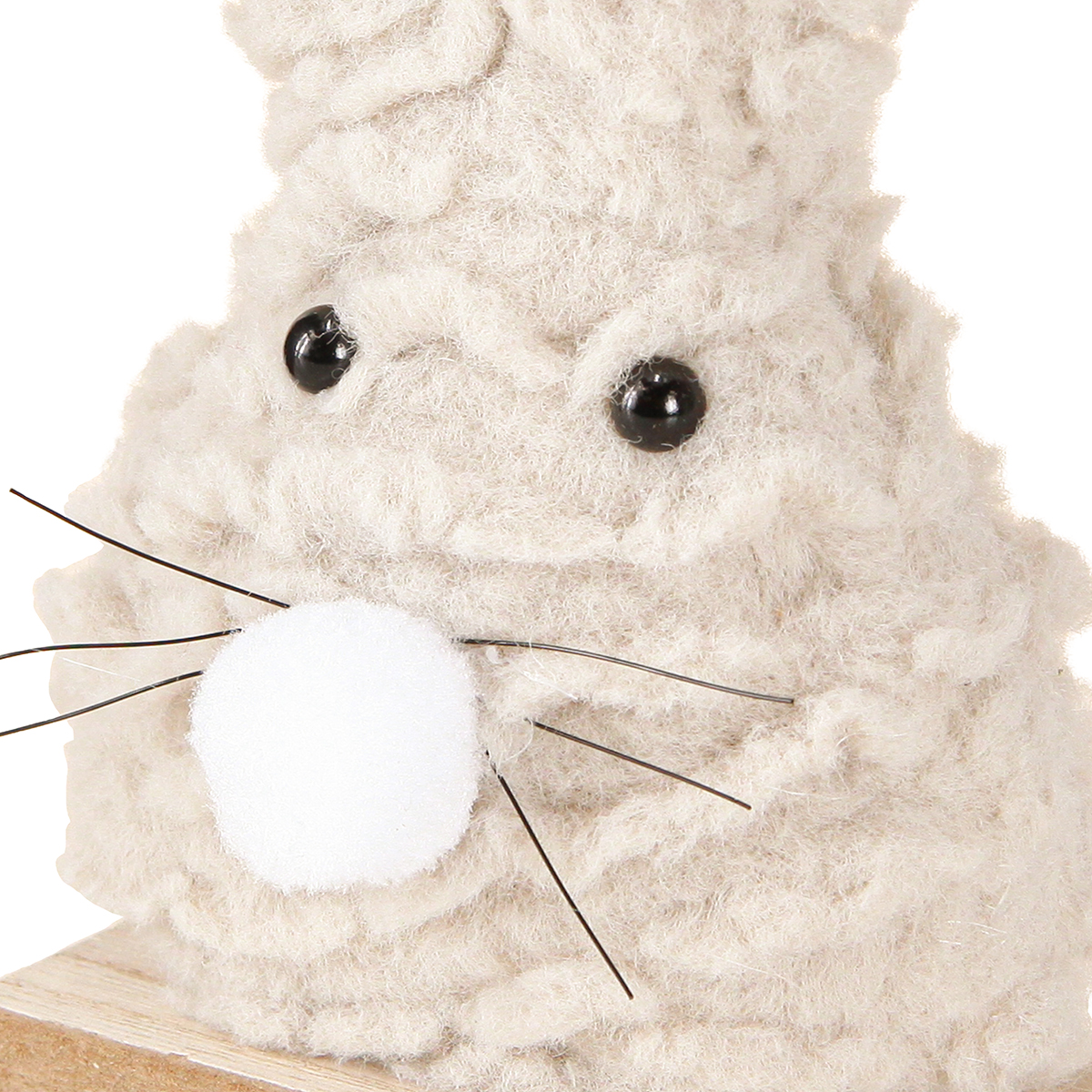 Deko-Osterhase aus Plüsch – Flauschige Osterdeko in Beige & Weiß auf Holzsockel H18cm 2 St