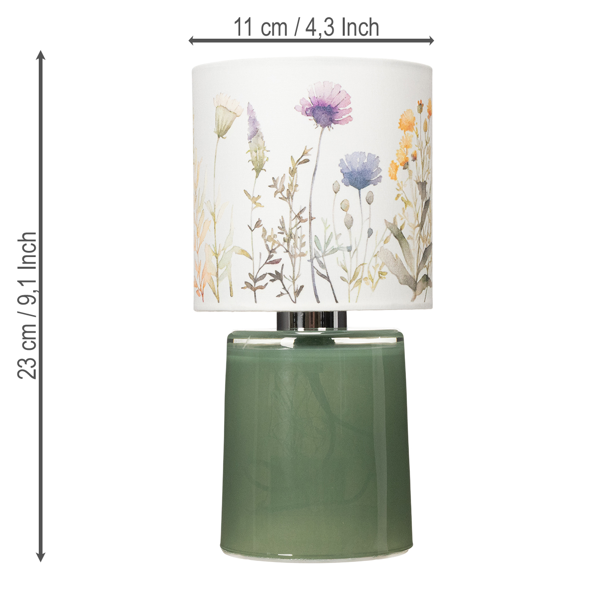 Suchen Sie nach einer Lampe, die nicht nur für angenehmes Licht sorgt, sondern auch Ihrem Raum einen Hauch von Eleganz verleiht? Diese Tischlampe mit Blumenmuster ist ein echtes Highlight für jeden Wohnbereich! Der charmante Blütenschirm in Kombination mit dem Glasfuß in einem edlen Grün macht sie zu einem dekorativen Allrounder – egal, ob Sie es modern, romantisch oder skandinavisch mögen. Mit ihrer kompakten Größe von 23 cm Höhe und einem Durchmesser von 11 cm passt sie perfekt auf Beistelltische, Nachttische oder in Regale. Gleichzeitig sorgt die LED-Technologie für ein angenehmes, energieeffizientes Licht, das Zuhause sofort gemütlicher macht.