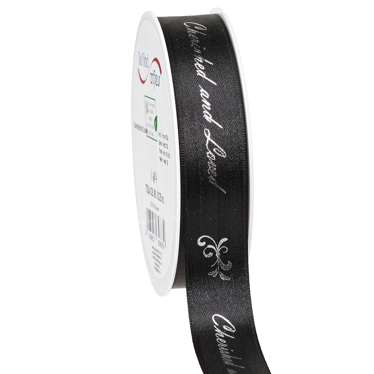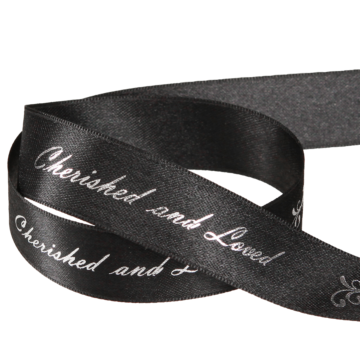 Produktname: Trauerband Spruch Schwarz Silber Cherished … 25mm 25m
