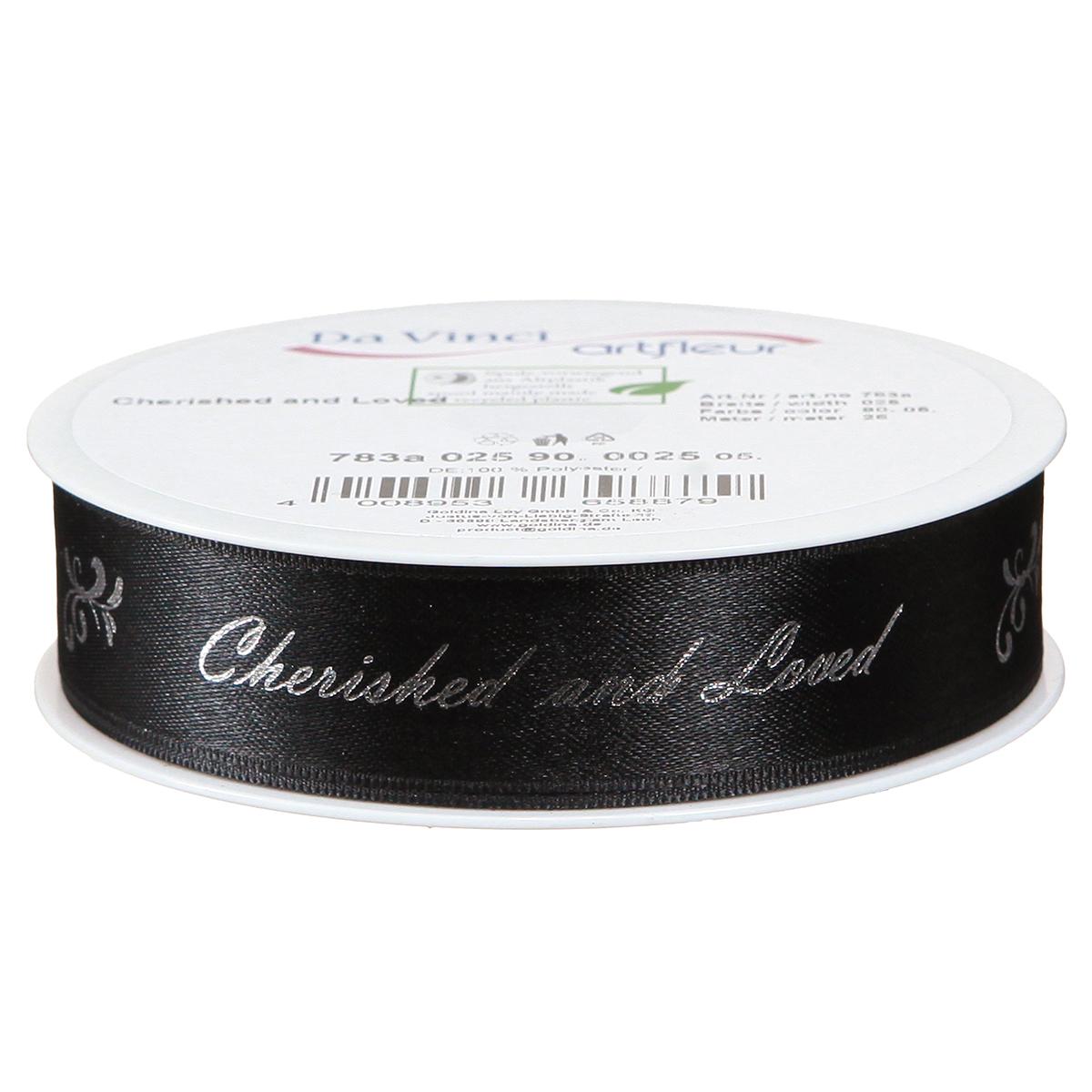 Trauerband Spruch Schwarz Silber Cherished … 25mm 25m