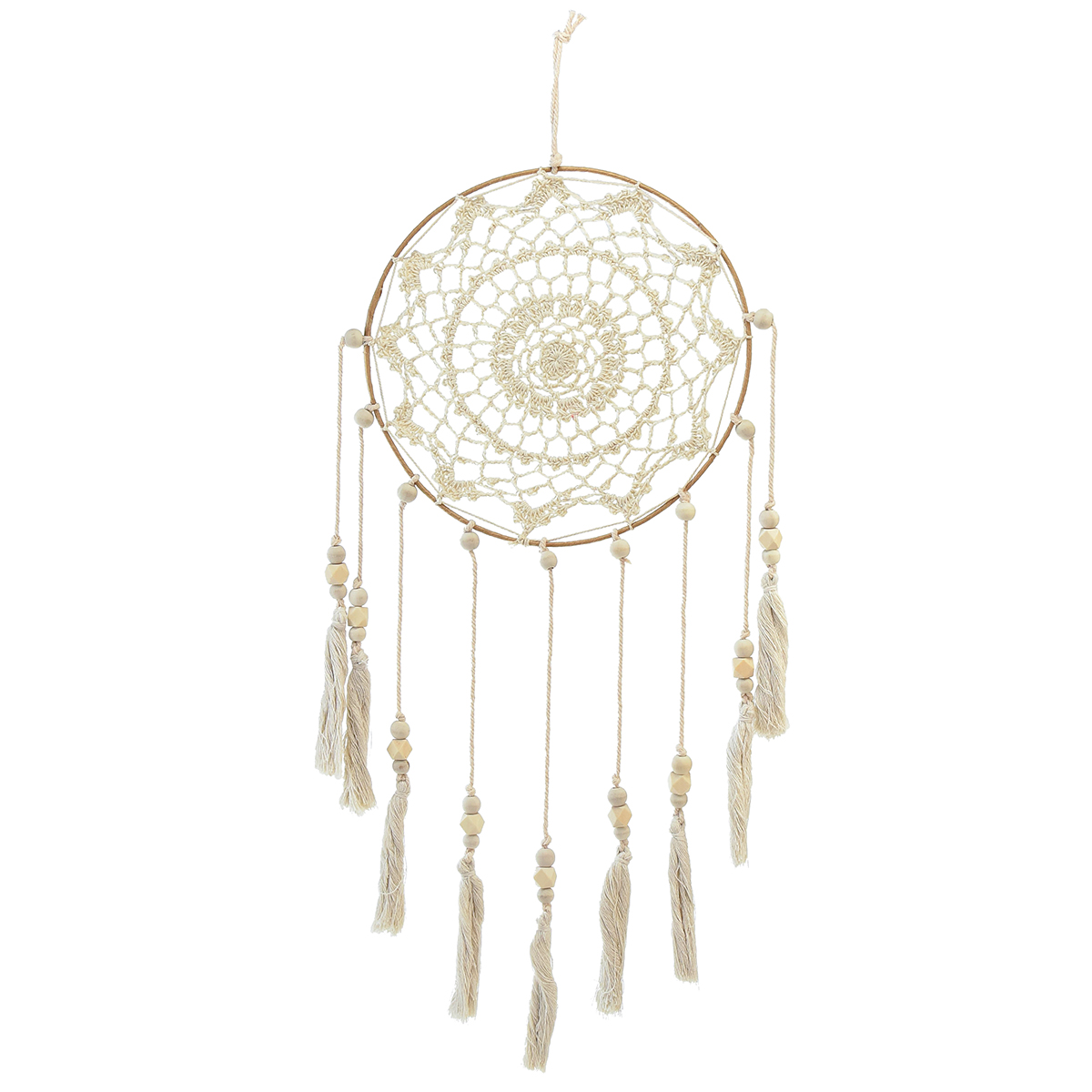 Traumfänger Makramee Wanddeko Creme Ø22cm H54cm