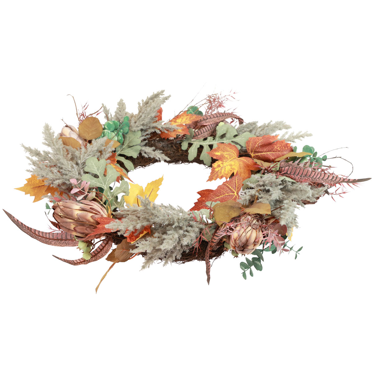 Produktname: Türkranz Protea Künstlicher Kranz mit Herbstblättern Ø55cm