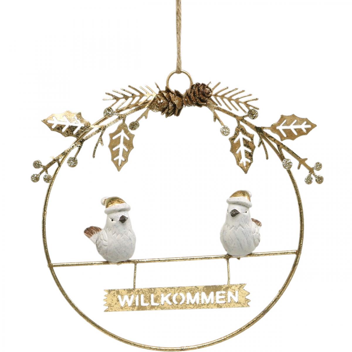 Türkranz “Willkommen”, Weihnachtsdeko, Vögel Golden Ø15cm B17cm