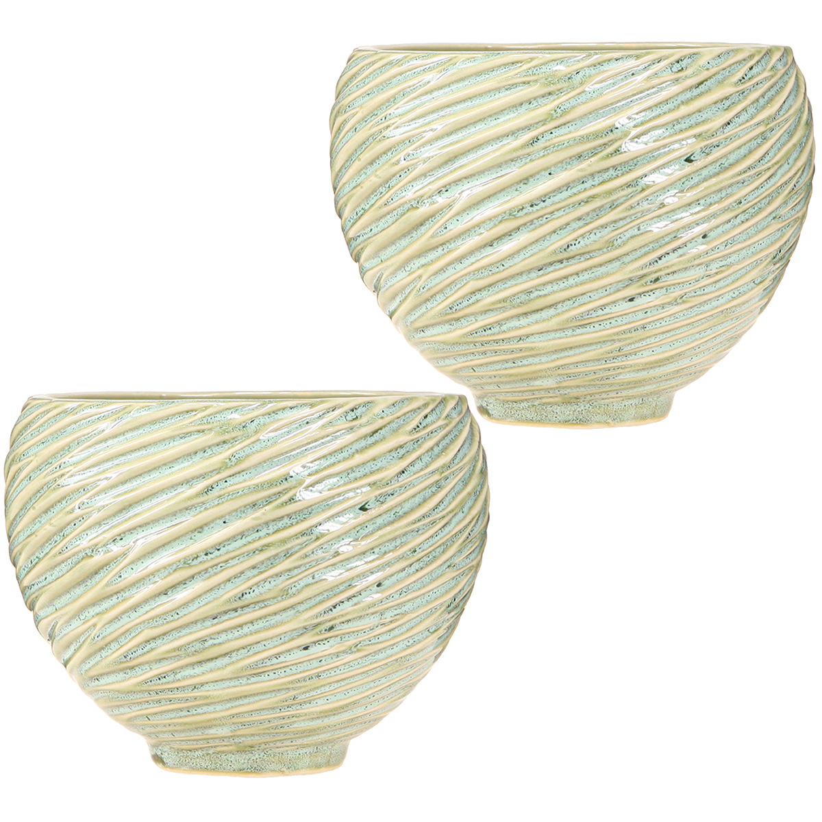 Übertopf Dekoschale Keramik in Grün Ø15cm H11cm 2St