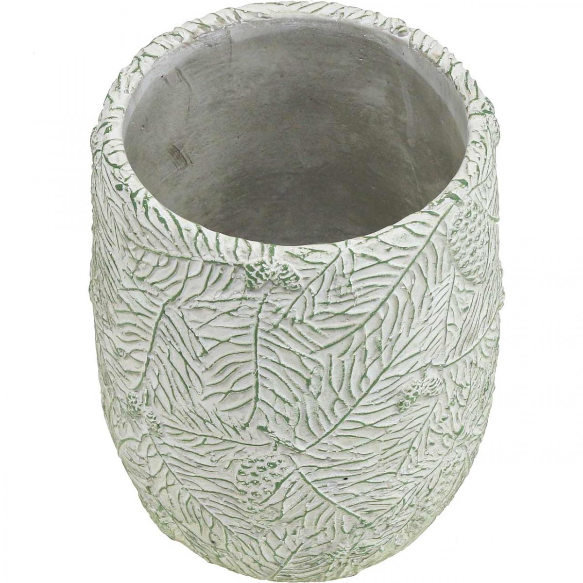 Produktname: Übertopf Keramik Grün Weiß Grau Tannenzweige Ø12cm H17,5cm