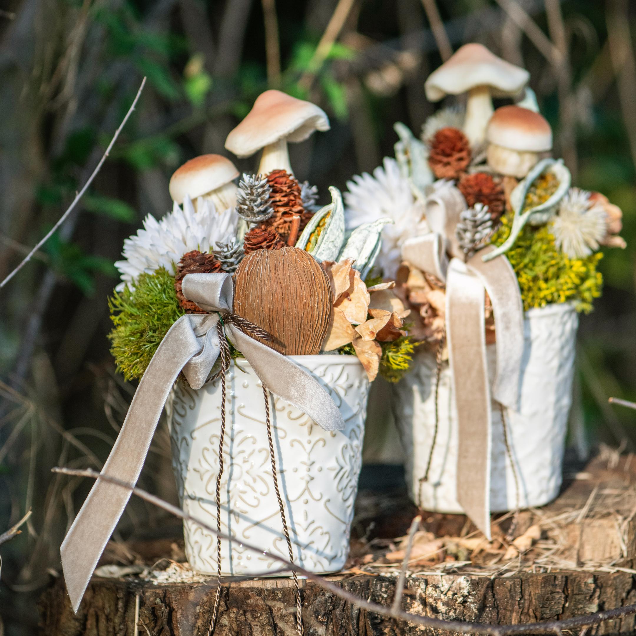 Die weißen Pflanzgefäße können rund ums Jahr eingesetzt werden. Oder Sie nutzen diese aufgrund ihrer Optik als Deko für festliche Anlässe wie eine Hochzeit.