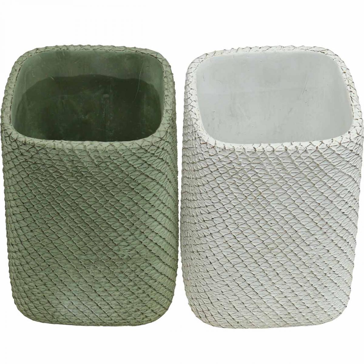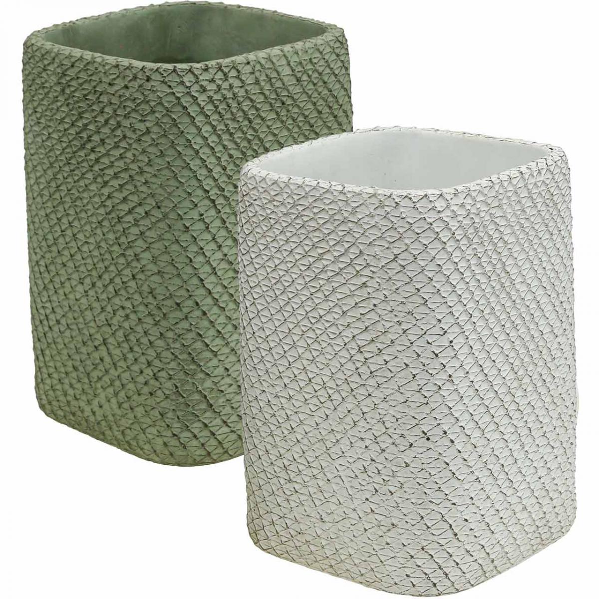 Übertopf Keramik Weiß Grün Relief Netz 14x14cm H21,5cm 2St