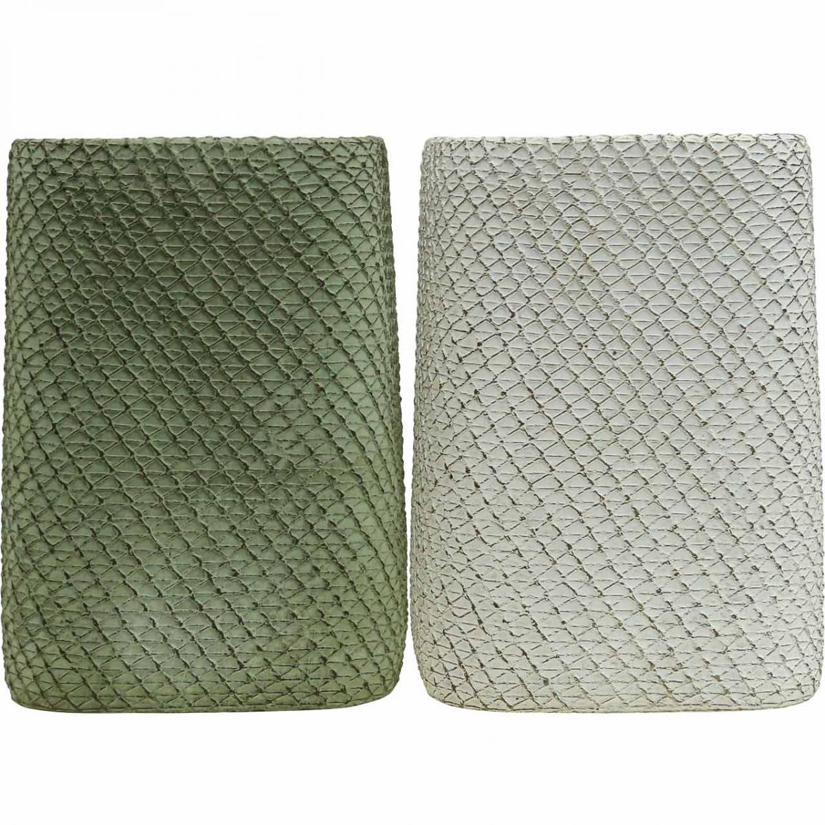 Produktname: Übertopf Keramik Weiß Grün Relief Netz 14x14cm H21,5cm 2St