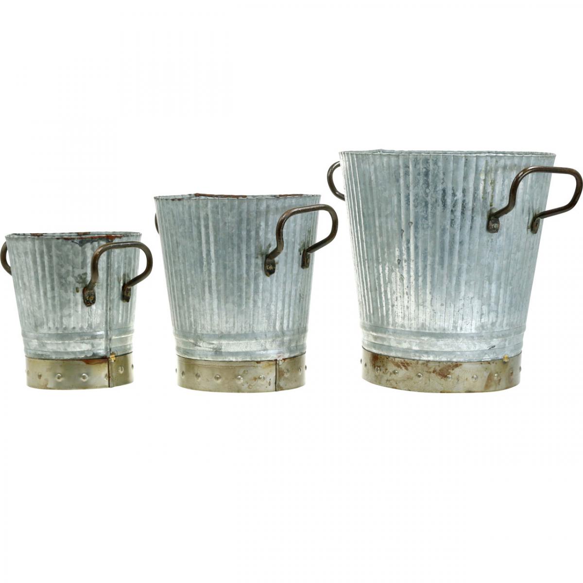 Übertopf Metall mit Griffen Vintage Deko Ø26/20/17cm 3er-Set