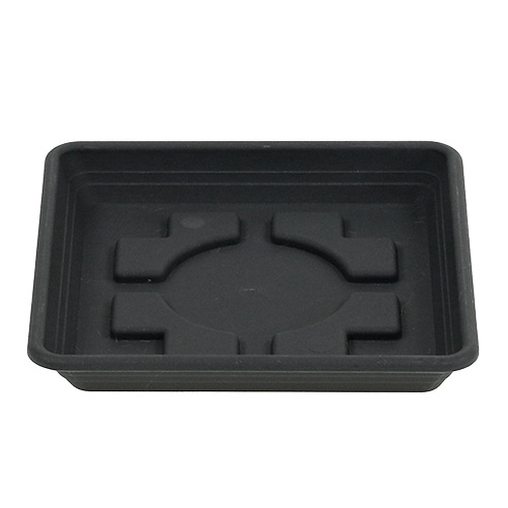 In der Mitte befinden sich Erhebungen, die einerseits die Töpfe und Kübel leicht erhöht stehen lassen, damit das nicht benötigte Wasser besser abfließen kann, und andererseits perfekt zu den Pflanztöpfen „Nora“ aus unserem Sortiment passen. Diese werden durch die Muster noch zusätzlich fixiert werden. Durch die praktische Form passt sich der Untersetzer auch platzsparend Ecken und Möbelstücken an. Durch den hohen Rand fängt die Schale eine Menge Wasser auf, das von den Pflanzen bei Bedarf auch wieder aufgenommen werden kann.