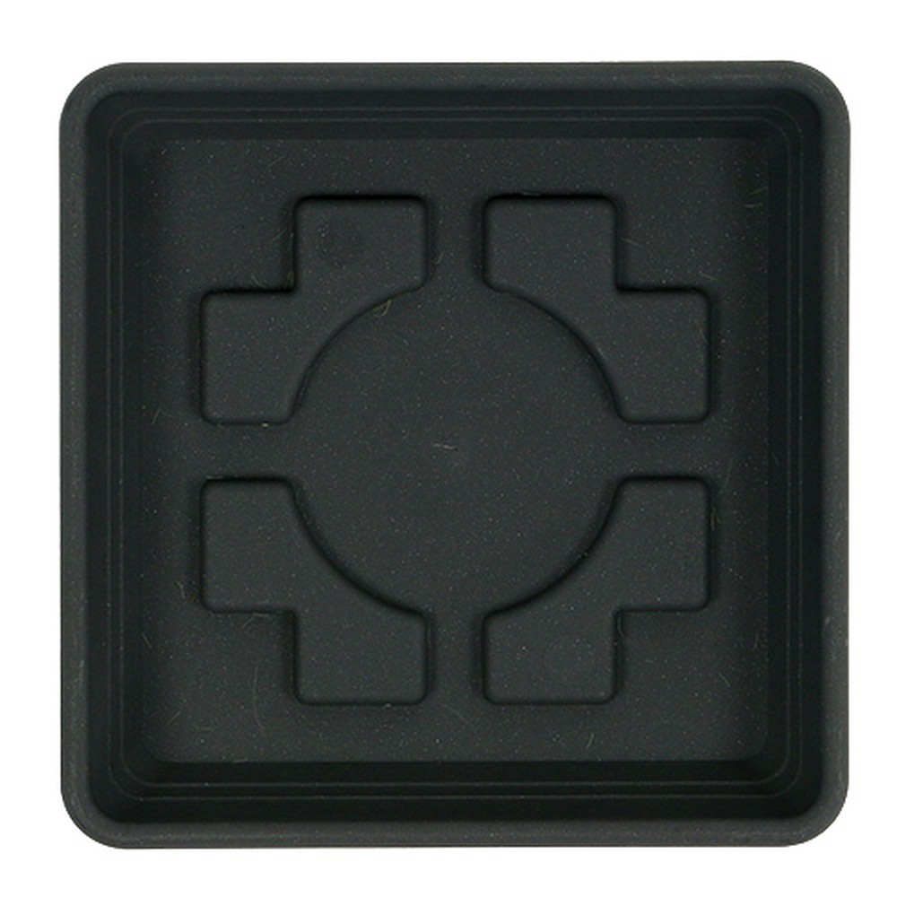Der eckige Untersetzer „Lara“ in Anthrazit besitzt in etwa die Außenmaße 25 x 25 Zentimeter und die Innenmaße 20,5 x 20,5 Zentimeter.