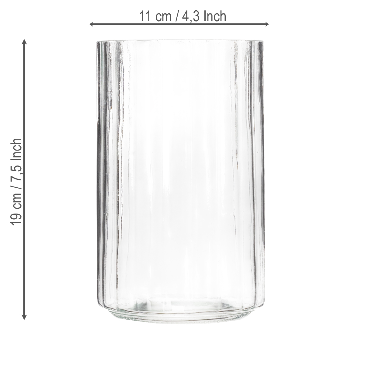 Sie suchen das Besondere für Ihre Inneneinrichtung? Dann könnte diese Vase mit ihrer raffinierten Streifenstruktur genau das Richtige sein! Ob auf dem gedeckten Tisch für elegante Dinnerabende oder als Highlight auf einer Kommode – diese moderne Vintage Glasvase zieht alle Blicke magisch an. Mit einem Durchmesser von 11 cm und einer Höhe von 19 cm ist sie sowohl dezent als auch präsent, um Ihre Blumenarrangements stilvoll in Szene zu setzen. Die transparente Oberfläche aus hochwertigem Glas sorgt für einen minimalistischen, aber keineswegs langweiligen Look.