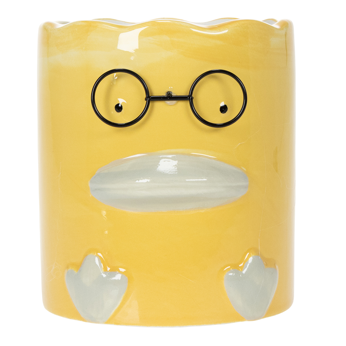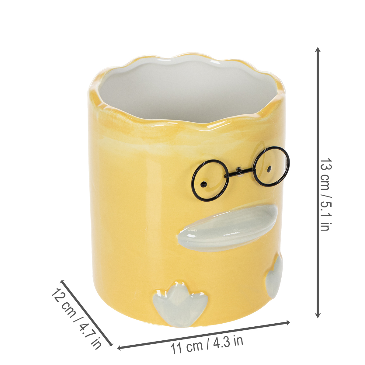 Diese gelbe Keramikvase mit Tiermotiv vereint Funktionalität und Ästhetik auf eine ganz besondere Weise. Mit einer Höhe von 13 cm und einem Durchmesser von 12 cm bietet sie ausreichend Platz für Blumen, Trockenblumen oder auch Stifte und Büroutensilien. Die hochwertige Keramik sorgt für Stabilität und Langlebigkeit, während das charmante Enten-Design mit feinen Details wie der gewellten Öffnung und der lustigen Brille einen modernen und humorvollen Touch verleiht. In Kombination mit hellen Trockenblumen oder frischen Schnittblumen setzen Sie diese Vase ideal in Szene. Wer es natürlicher mag, kann sie auch mit kleinen Zimmerpflanzen wie Sukkulenten bepflanzen. Ebenso eignet sie sich hervorragend für die Aufbewahrung von Stiften oder anderen Kleinigkeiten, was sie auch im Büro oder Kinderzimmer funktional macht. Dieser Dekorationsartikel ist nicht nur eine Bereicherung für Ihre eigenen vier Wände, sondern auch eine wunderbare Geschenkidee für Freunde oder zur Einweihungsfeier. Eine gelungene Mischung aus praktischer Nutzung und dekorativer Schönheit!