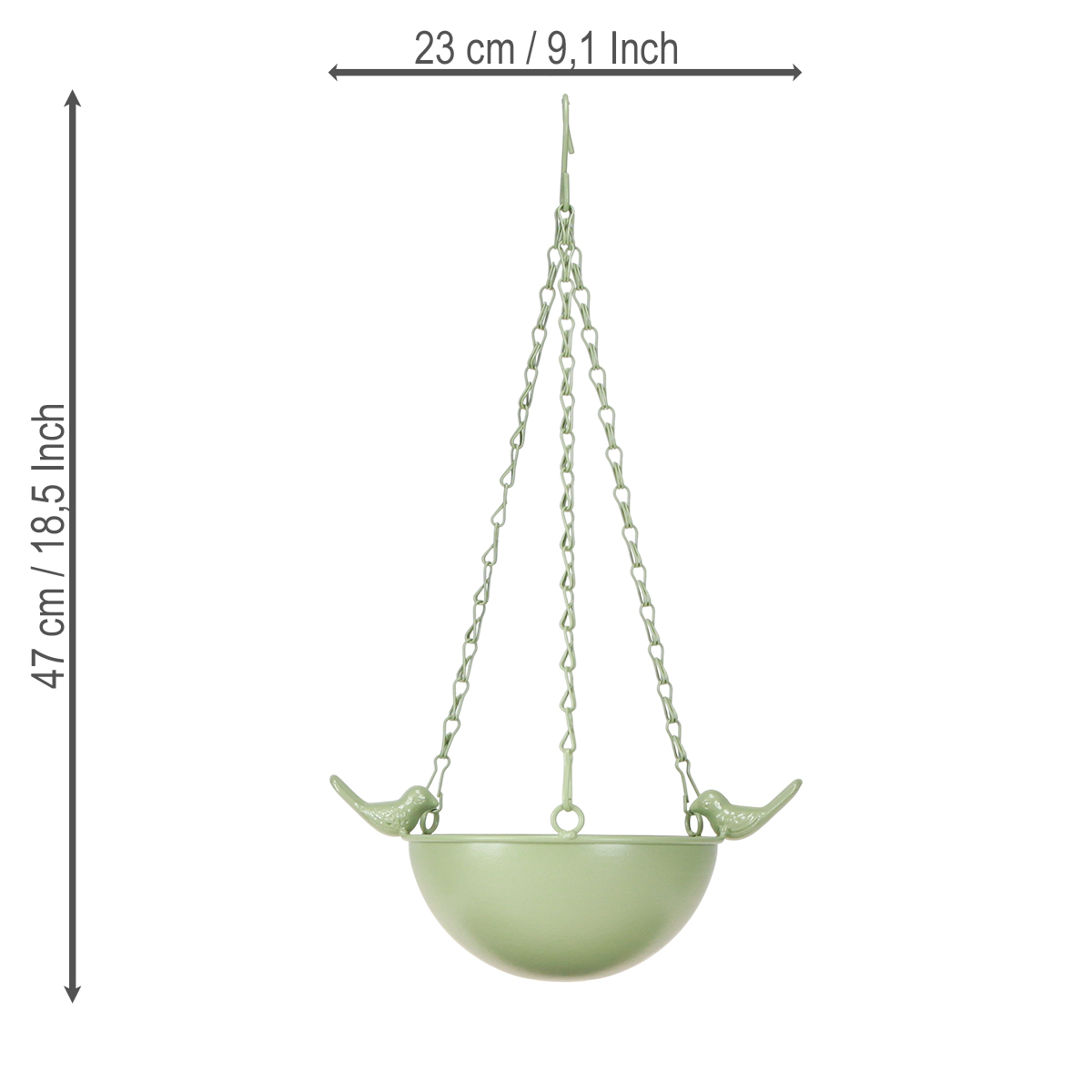Die stabile Kettenaufhängung erlaubt eine sichere Befestigung an Ästen, Balkongeländern oder kleinen Haken an der Terrasse. Besonders praktisch ist das wetterfeste Material aus robustem Metall, das dafür sorgt, dass Sie jahrelang Freude an diesem Vogelhäuschen haben. Die beiden dekorativen Vögel verleihen der Futterstation eine spielerische Eleganz und machen sie zum idealen Begleiter für Liebhaber des Landhausstils oder naturbetonter Dekorationen.