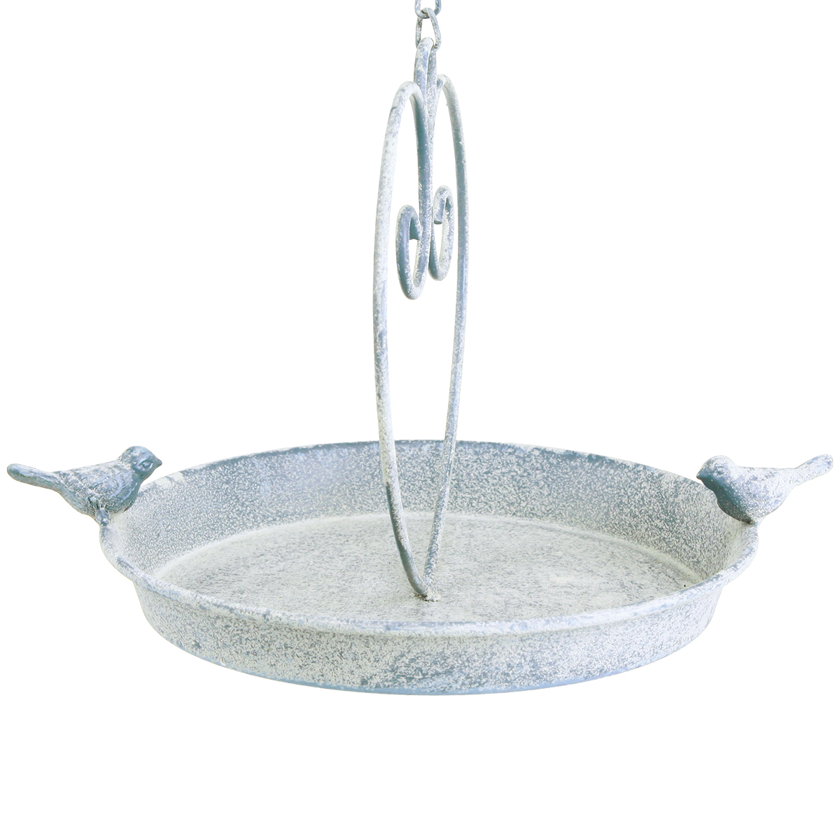 Vogeltränke Metall Deko Herz Weiß Blau Hängend Ø21,5cm