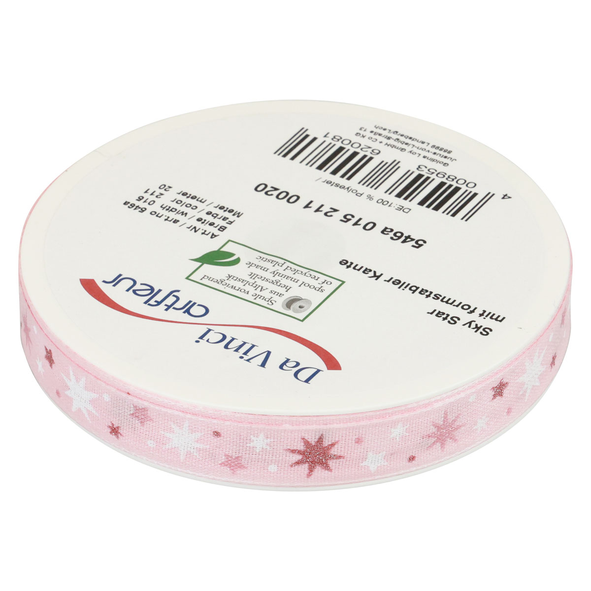 Produktname: Schleifenband Weihnachten Geschenkband Rosa Sternmuster 15mm 20m