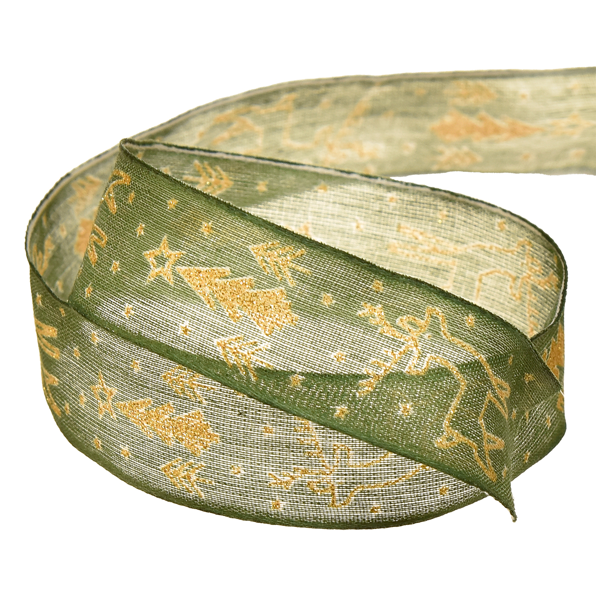 Produktname: Weihnachtsband Drahtkante Rentier Grün Gold B25mm L18m