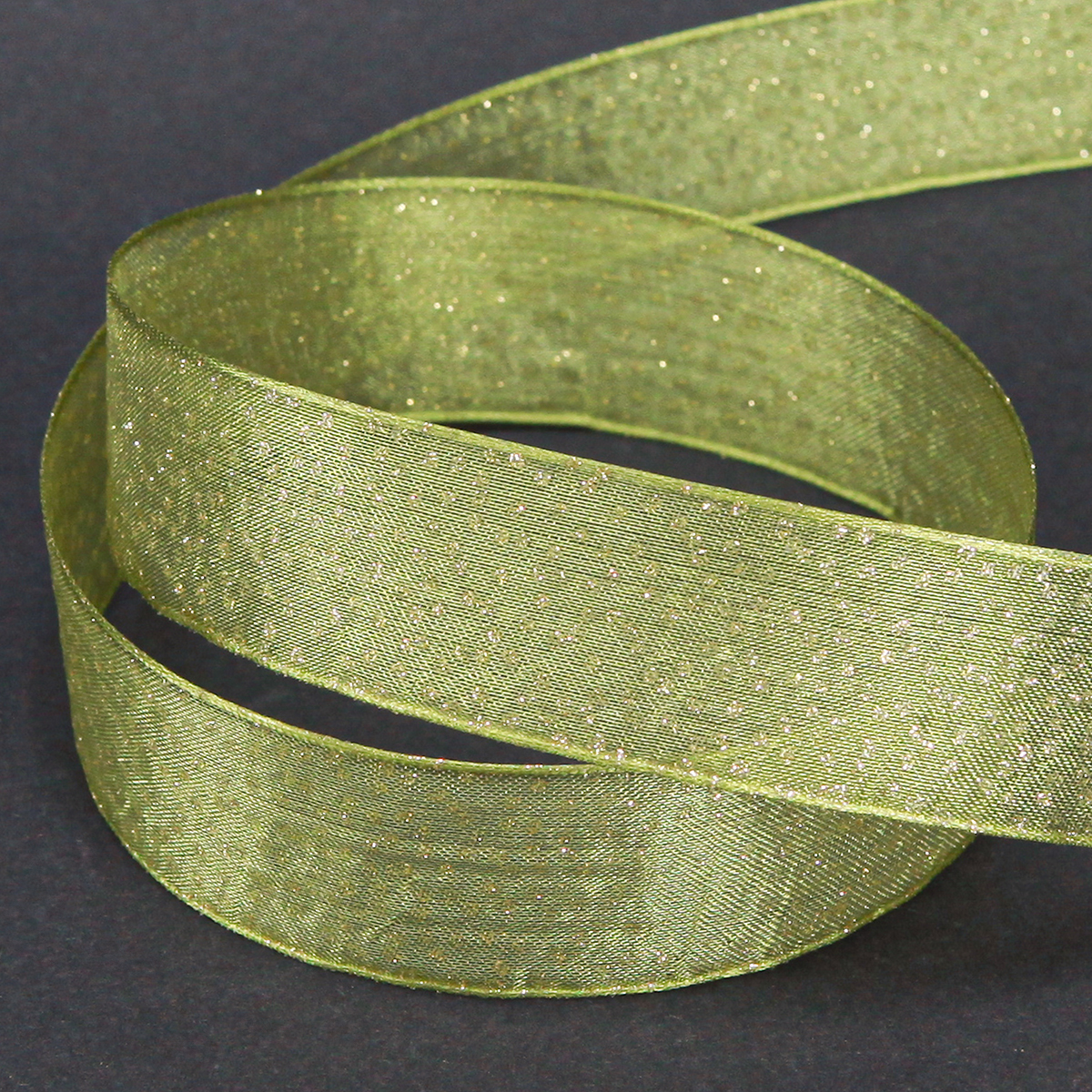 Das hellgrüne Weihnachtsband mit den Glitzerpunkten hat eine Länge von etwa 20 Metern und eine Breite von circa 25 Millimetern. Es besteht zu 59% aus Polyester und zu 41% aus Polyamid. Das Seidenband wird auf einer praktischen Rolle aus recyceltem Kunststoff geliefert.