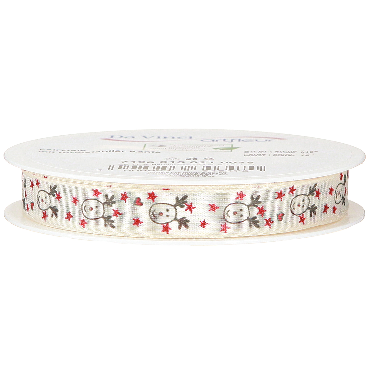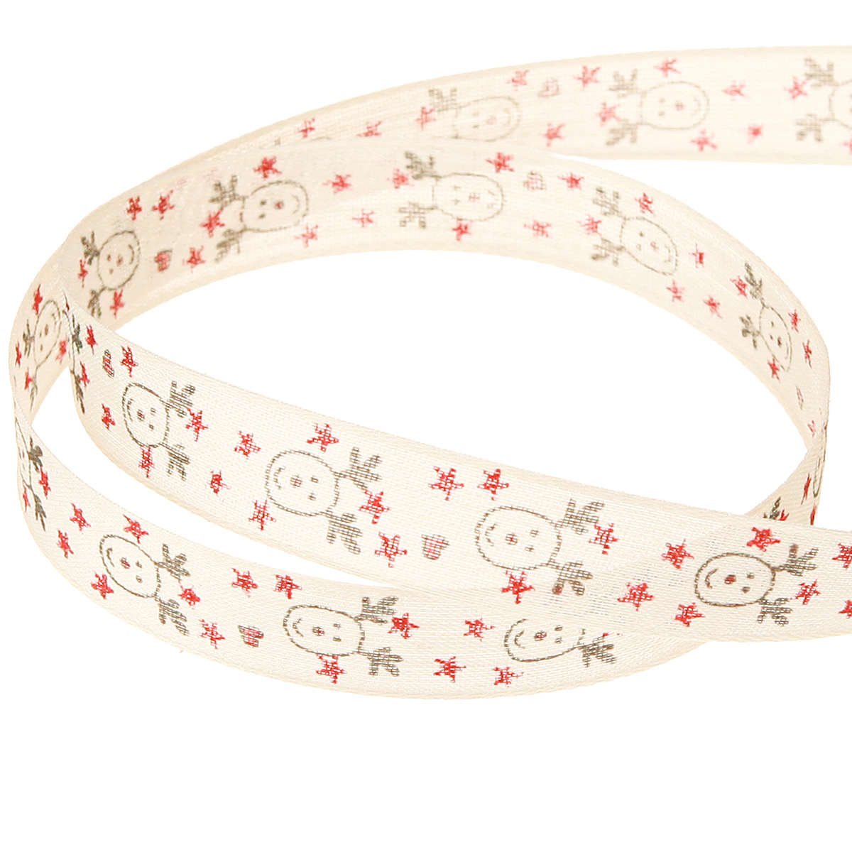 Produktname: Weihnachtsband mit Rentieren Weiß Creme Stabile Kante 15mm 18m