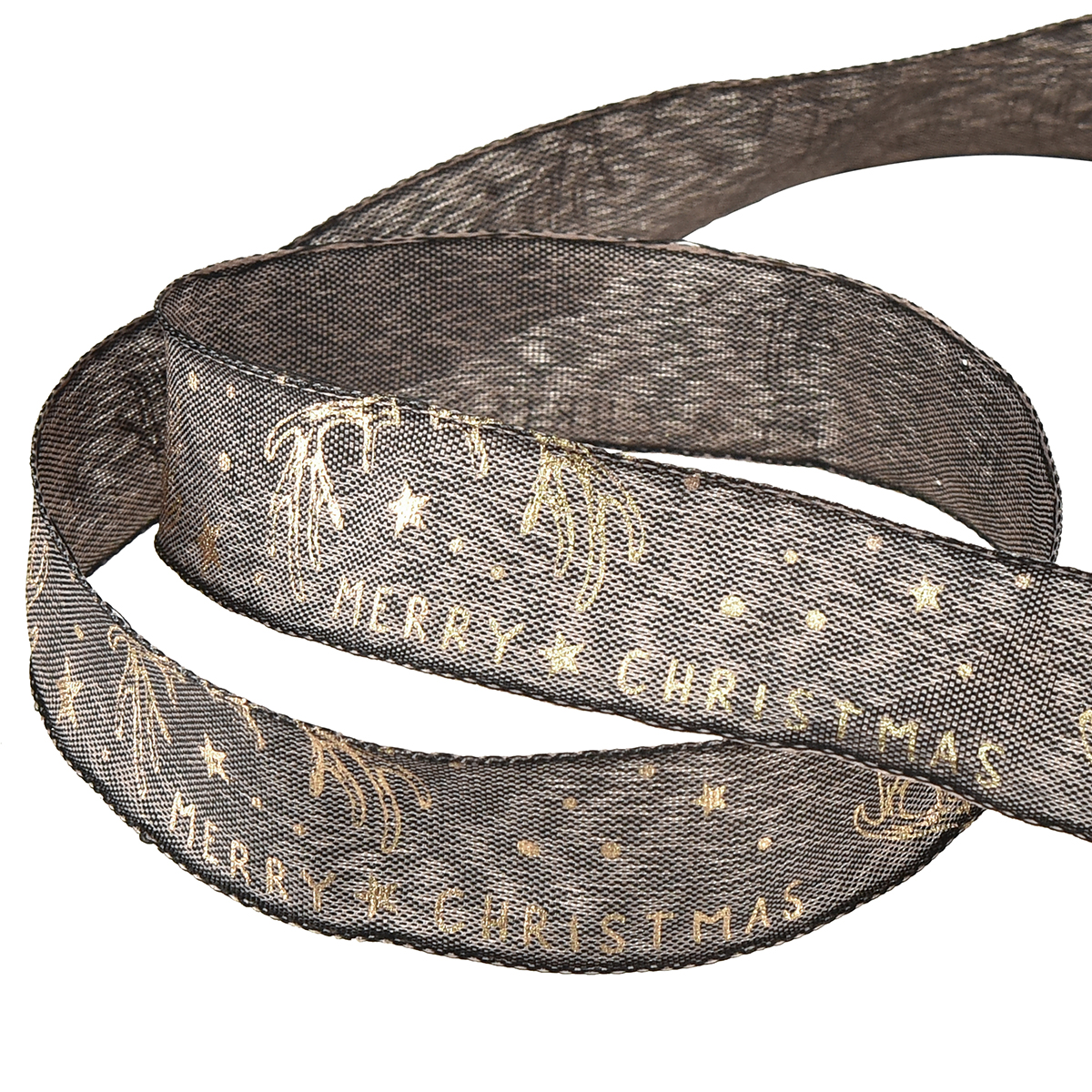 Klassisch-elegante Weihnachtsdekoration: Braunes Weihnachtsband mit Goldakzenten