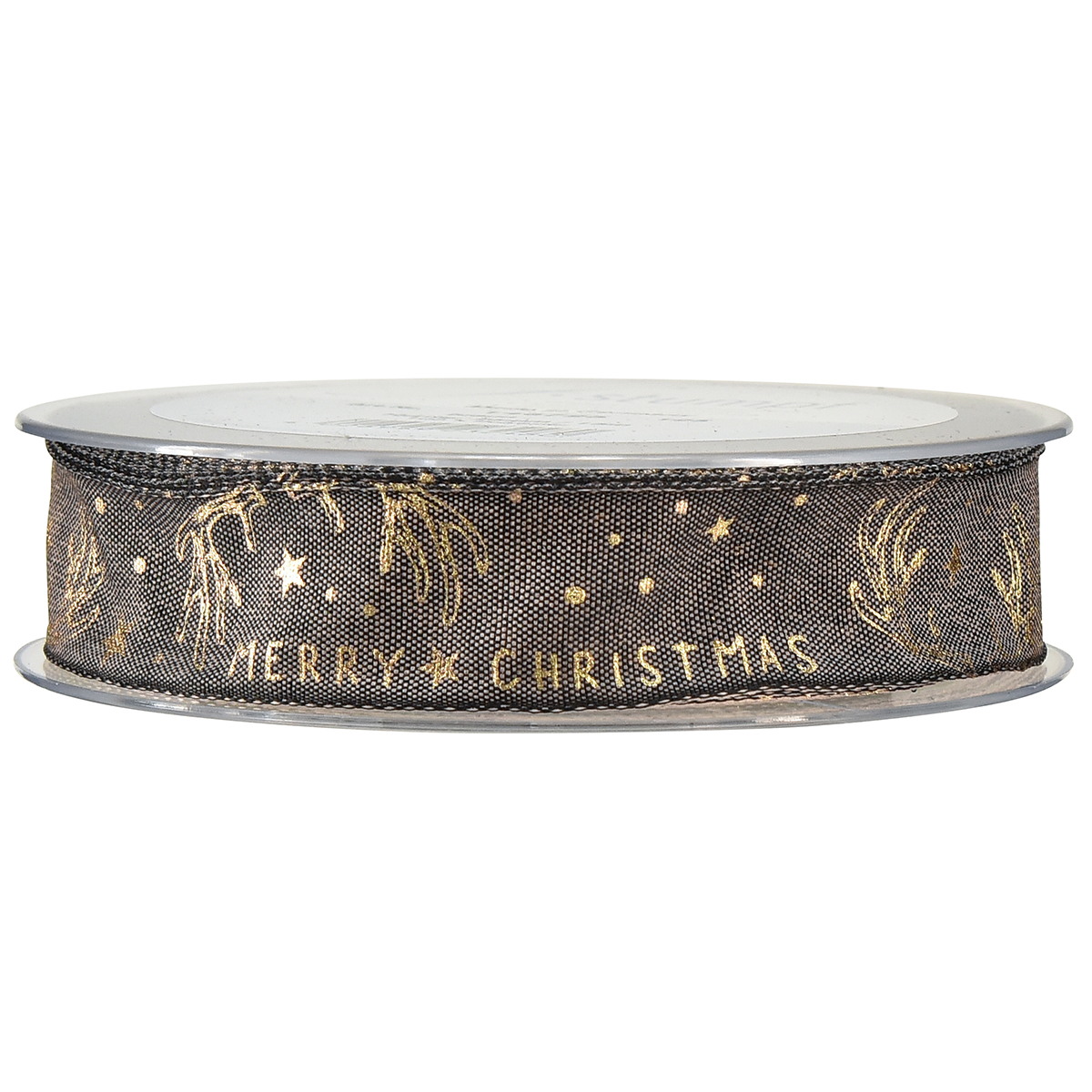 Produktname: Weihnachtsband Stern Geweih Deko Braun Gold B25mm L15m