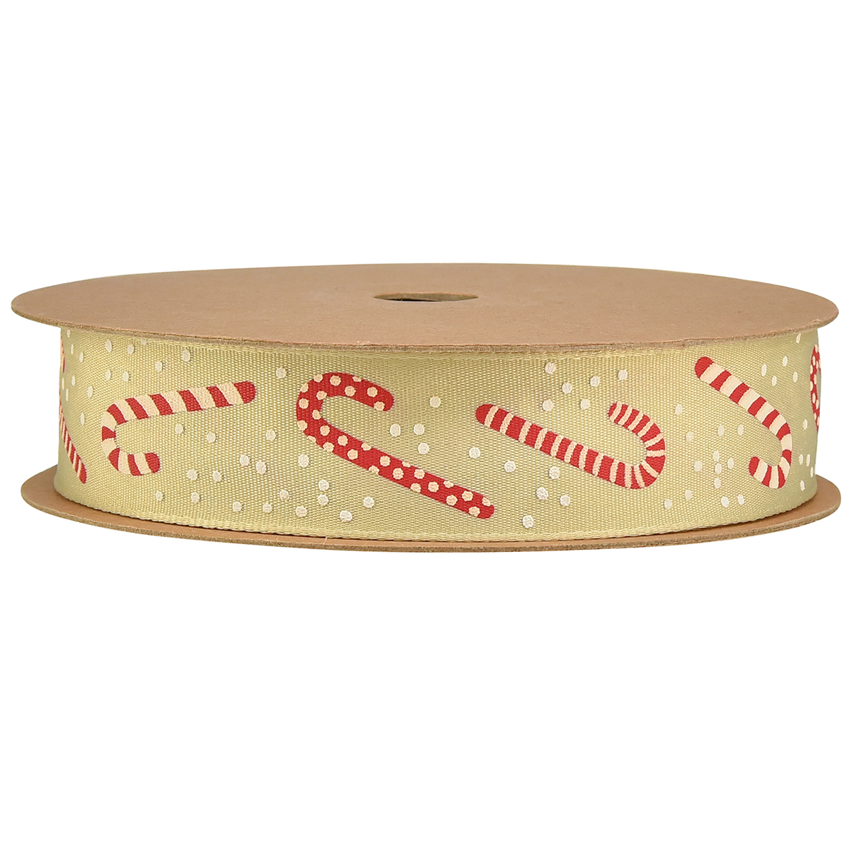 Produktname: Weihnachtsband mit Zuckerstangen Geschenkband Beige 25mm 15m