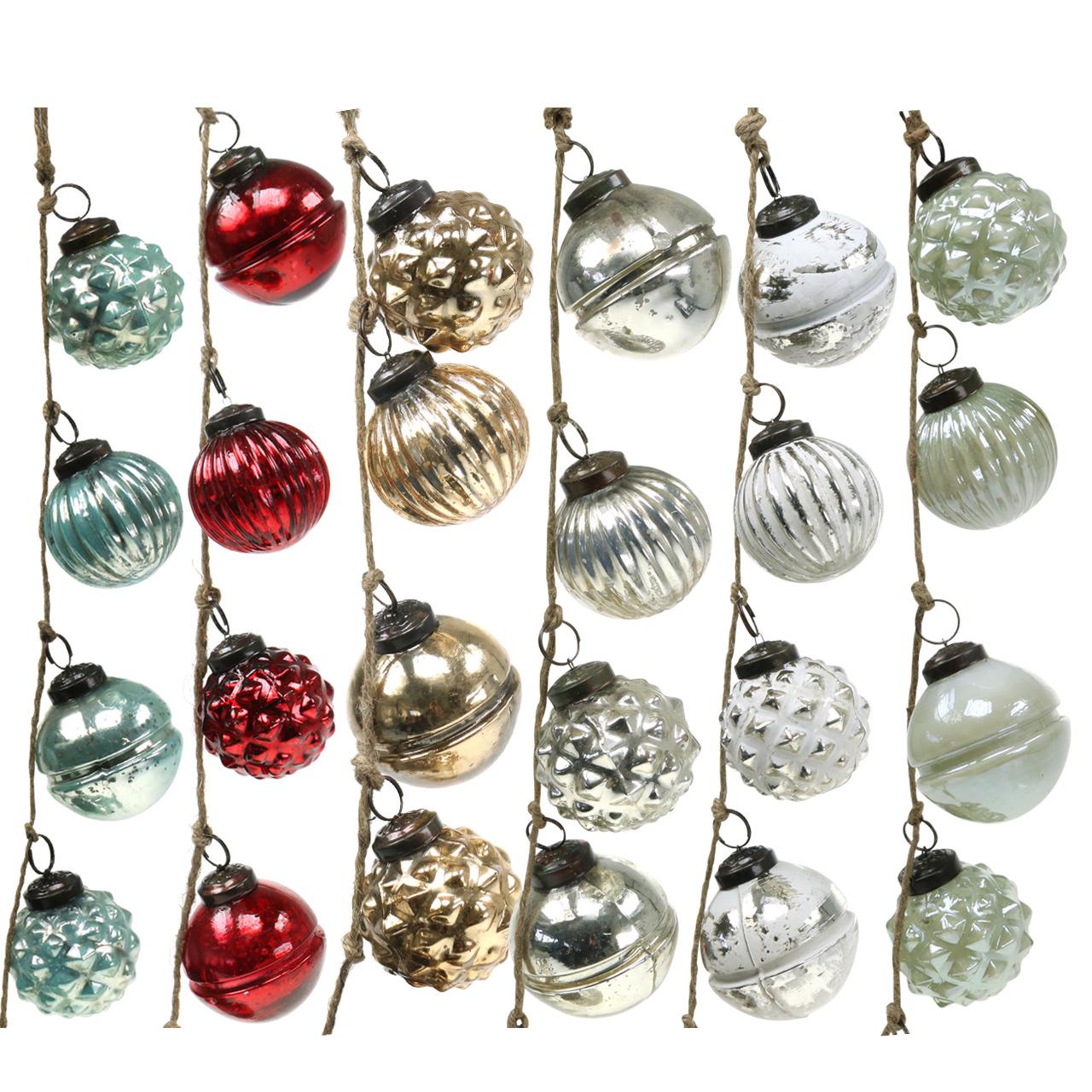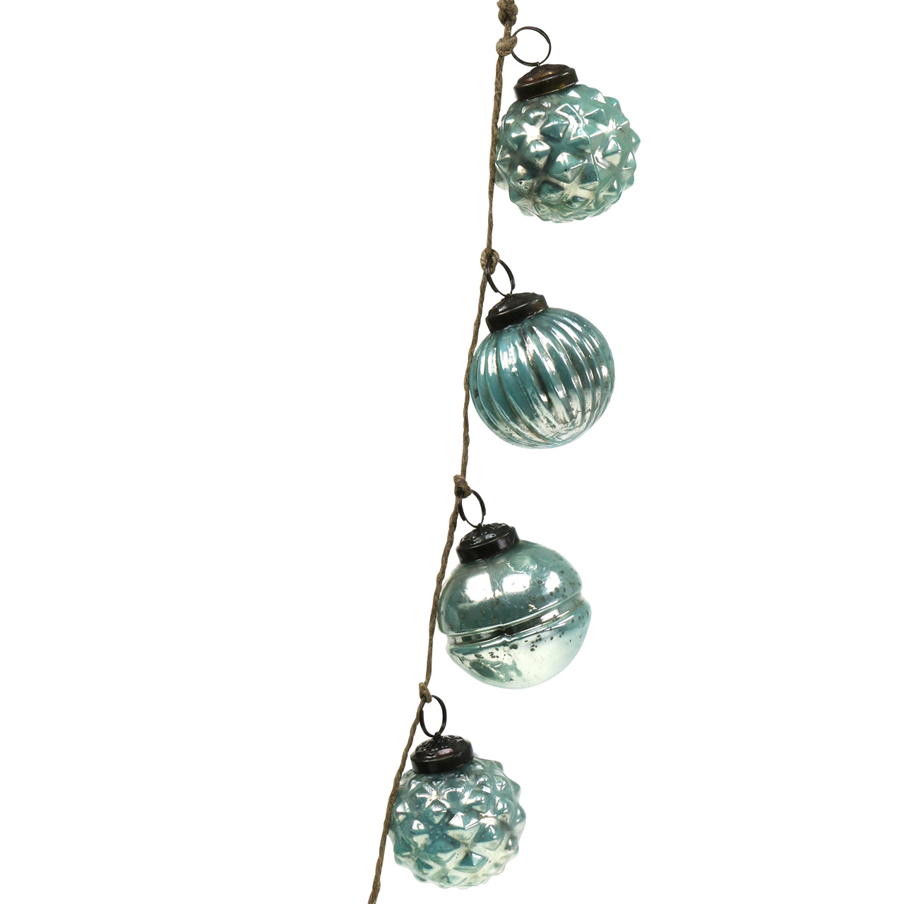 Was für eine tolle Brillanz: ganz im antiken Look mit verschiedenen Oberflächen ergeben hier insgesamt zwölf aparte Christbaumkugeln zusammen mit einer Jute Kordel eine charmante Girlande. Über den Reiter auf der rechten Seite können Sie zwischen sechs verschiedenen Farben auswählen.