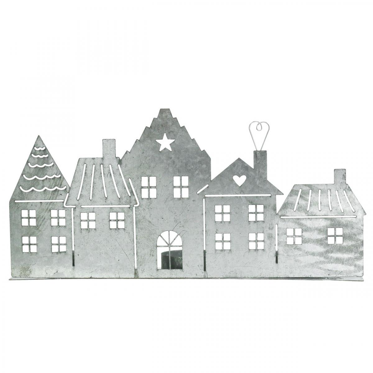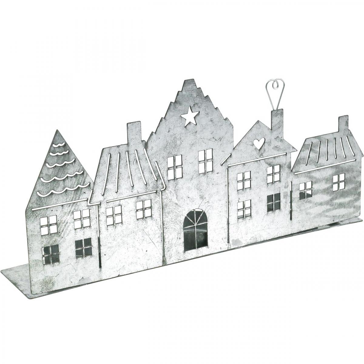 Produktname: Weihnachtsdeko Häuser, Teelichthalter Metall Silbern 25cm