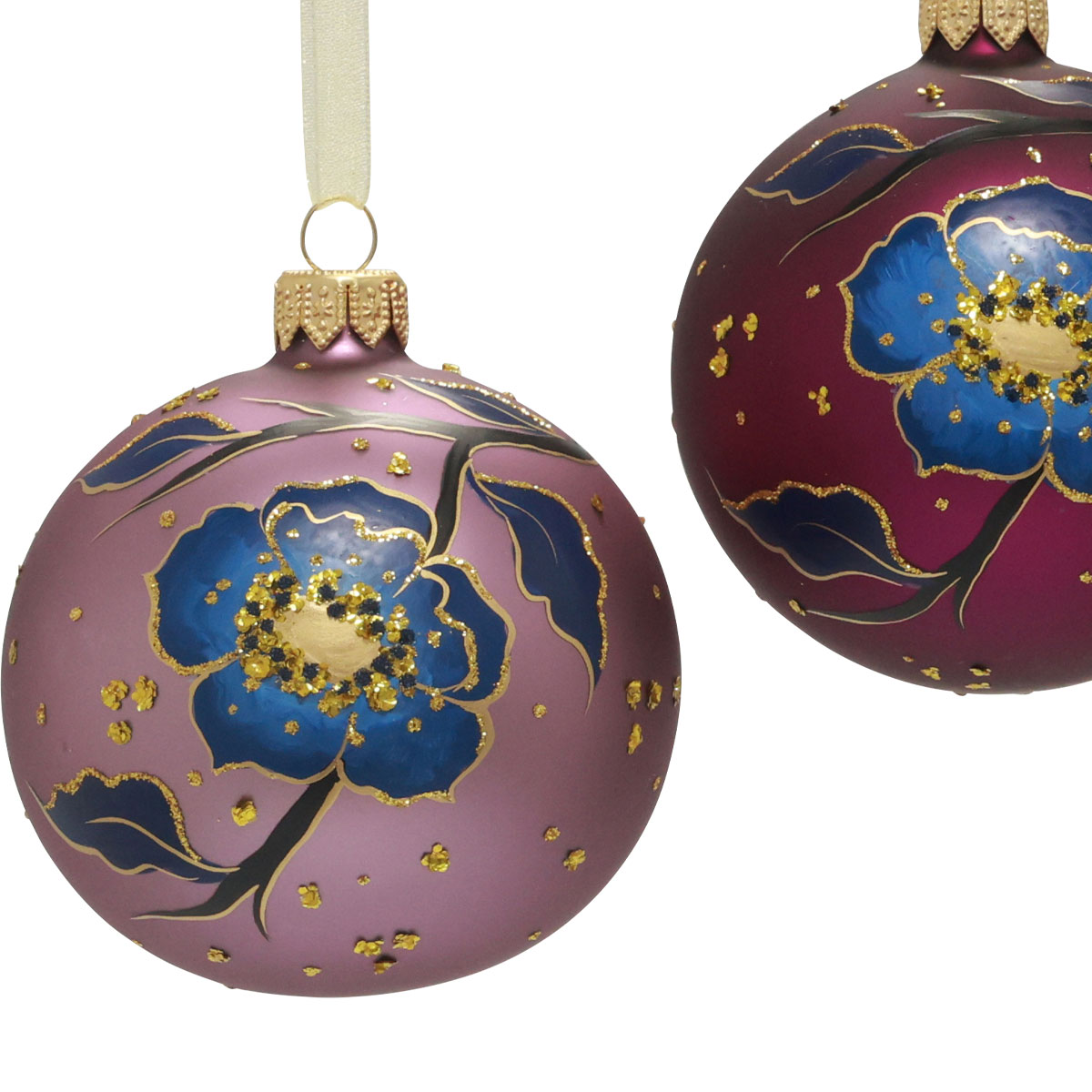 Weihnachtskugeln Glas Lila Christbaumkugeln Blume Ø8cm 6St