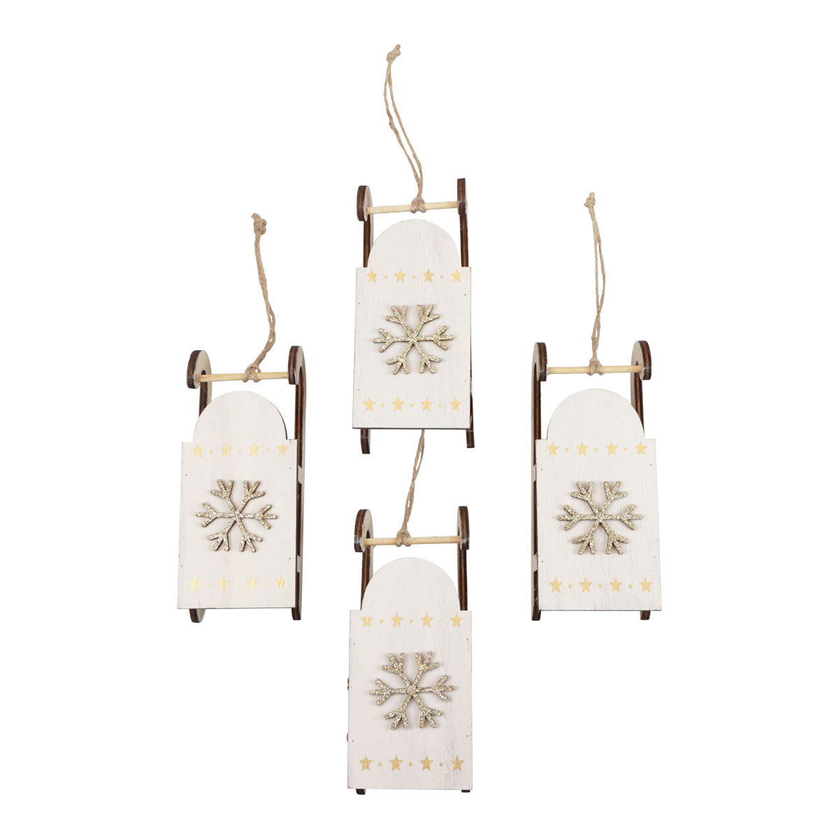 Weihnachtsschlitten Holz Weiß/Gold 15,5x6,5x4cm 4St