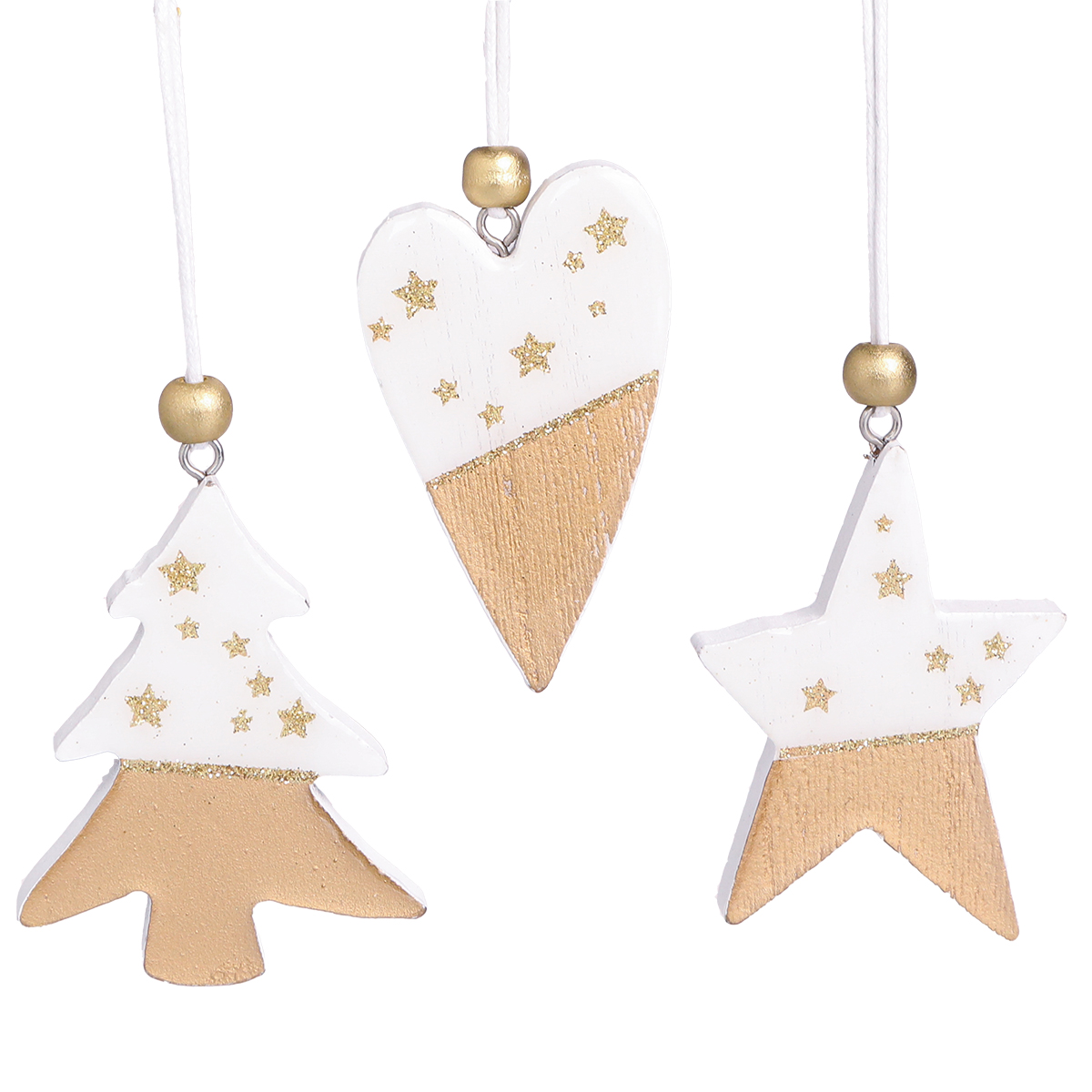 - Holz-Weihnachtsschmuck, weiß bemalt, mit Gold-Akzenten versehen