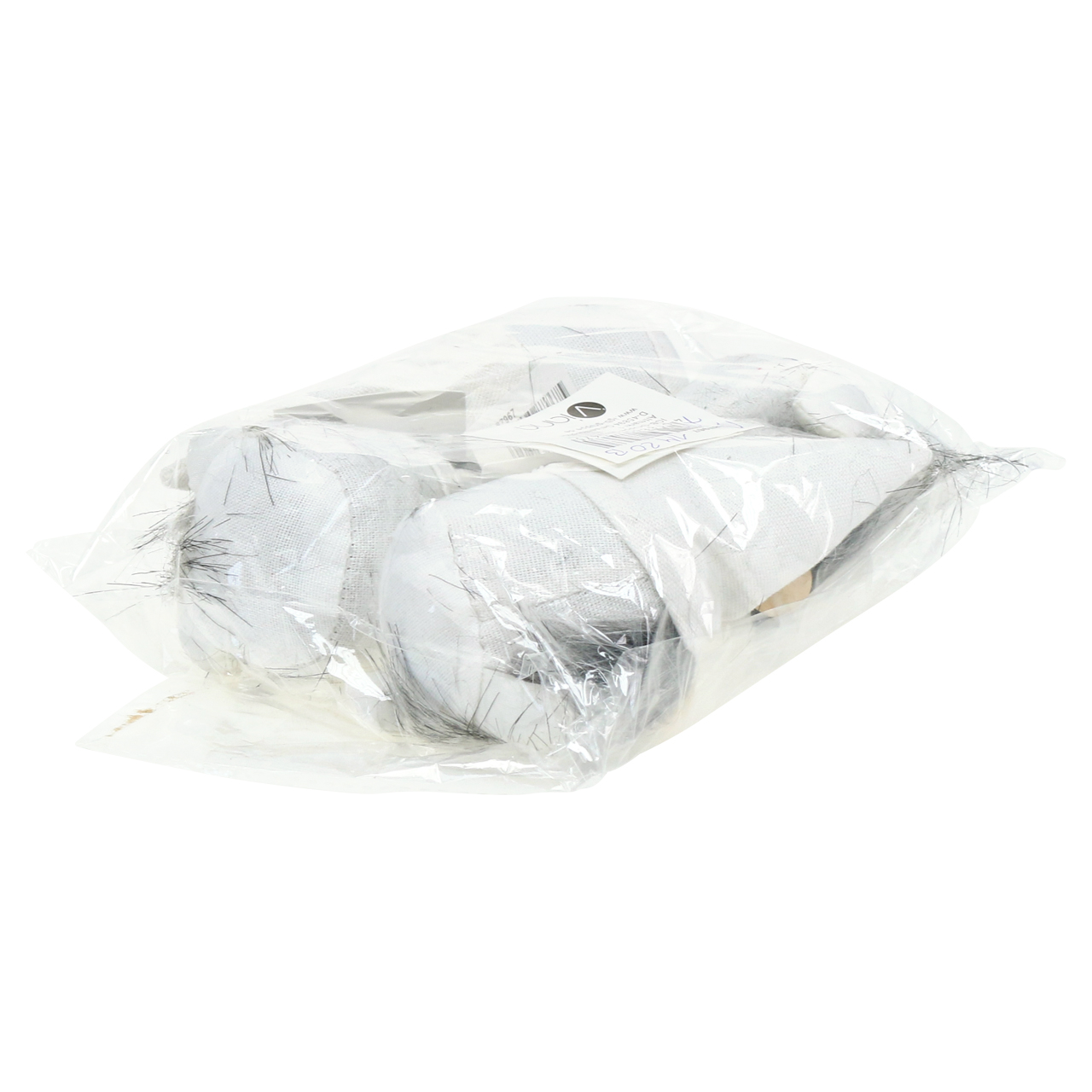 Sie erhalten die Weihnachtswichtel mit Bart in Weiß und Grau im 4er Set. Sie bestehen aus Textil, gefüllt mit Kunststoff, sowie einem Bart aus Kunsthaar und einer Nase aus Holz. Die Größe beträgt etwa 12 Zentimeter, der Durchmesser am Boden etwa 5 Zentimeter.
