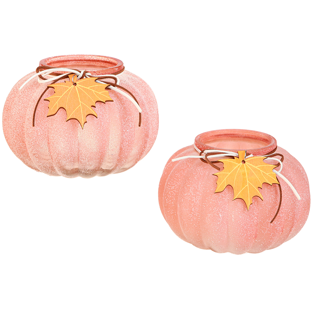 Windlicht Glas Kürbis Teelicht gefrostet Ø16cm H11cm 2St
