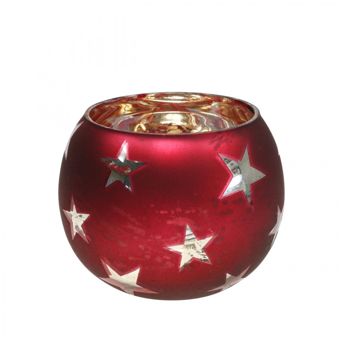 Windlicht Glas Teelichtglas mit Sternen Rot Ø9cm H7cm
